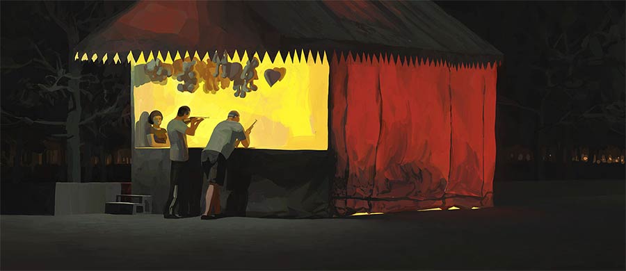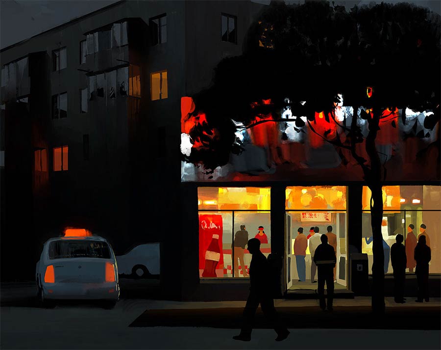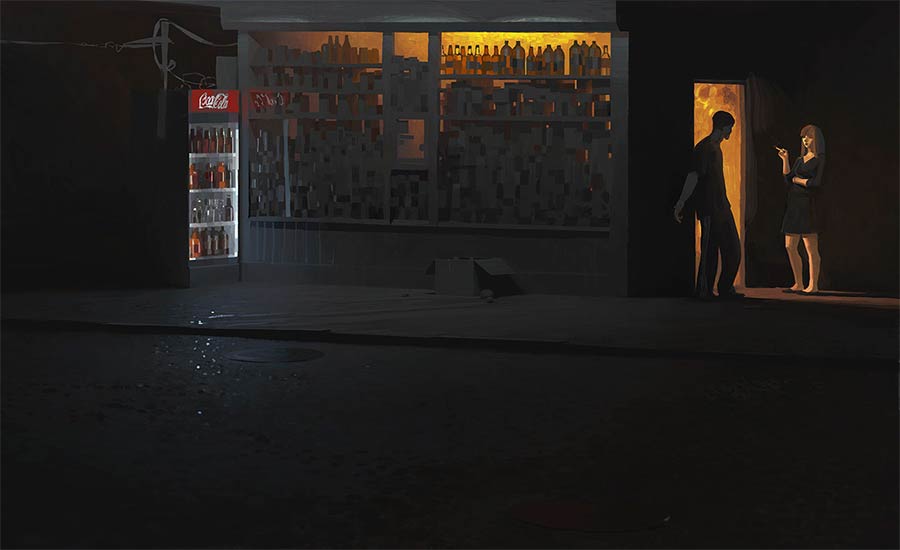 Irgendwo zwischen klassischer Malerei und illustrativer Genauigkeit liegen die Motive des russischen Künstlers Andrey Surnov. Der Großteil seines Portfolio besteht aus Digital Paintings, die gekonnt mit Licht-Schatten-Kontrasten umgehen. Vor allem seine Reihen „Night1“ und „Night2“ gefallen mir sehr, schaffen sie doch eine tolle Atmosphäre und spielen stets zwischen Realismus und Abstraktheit.