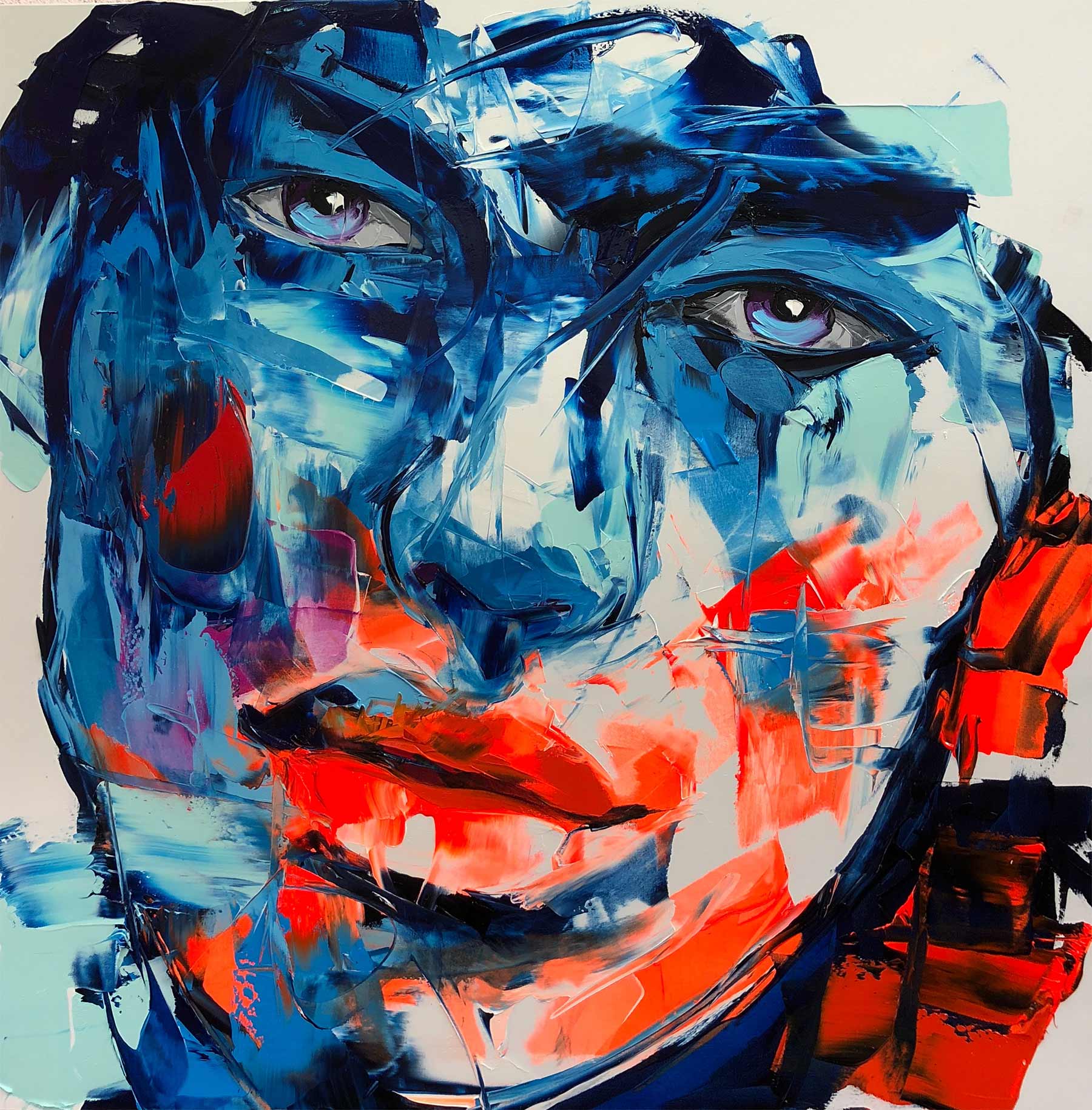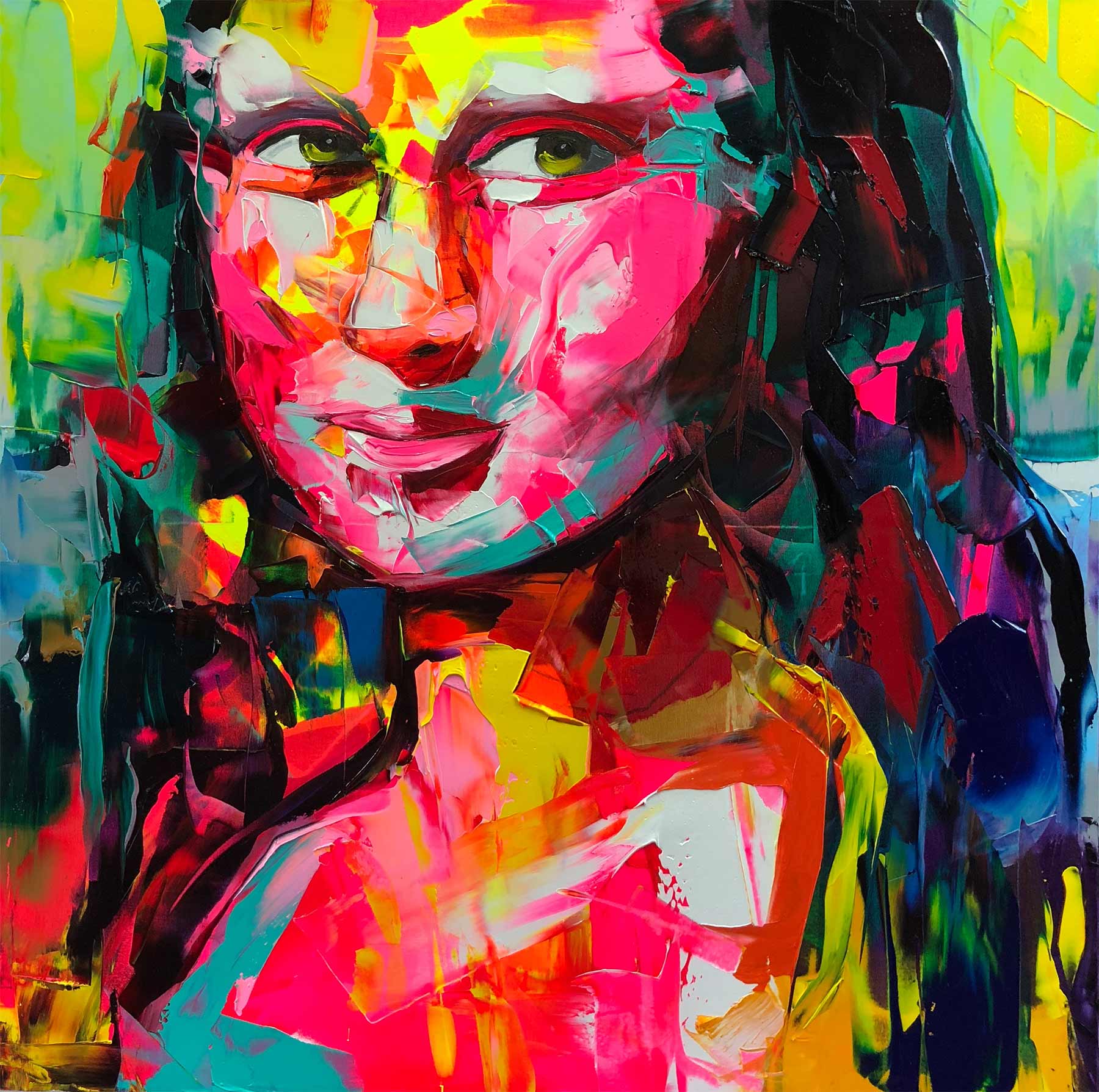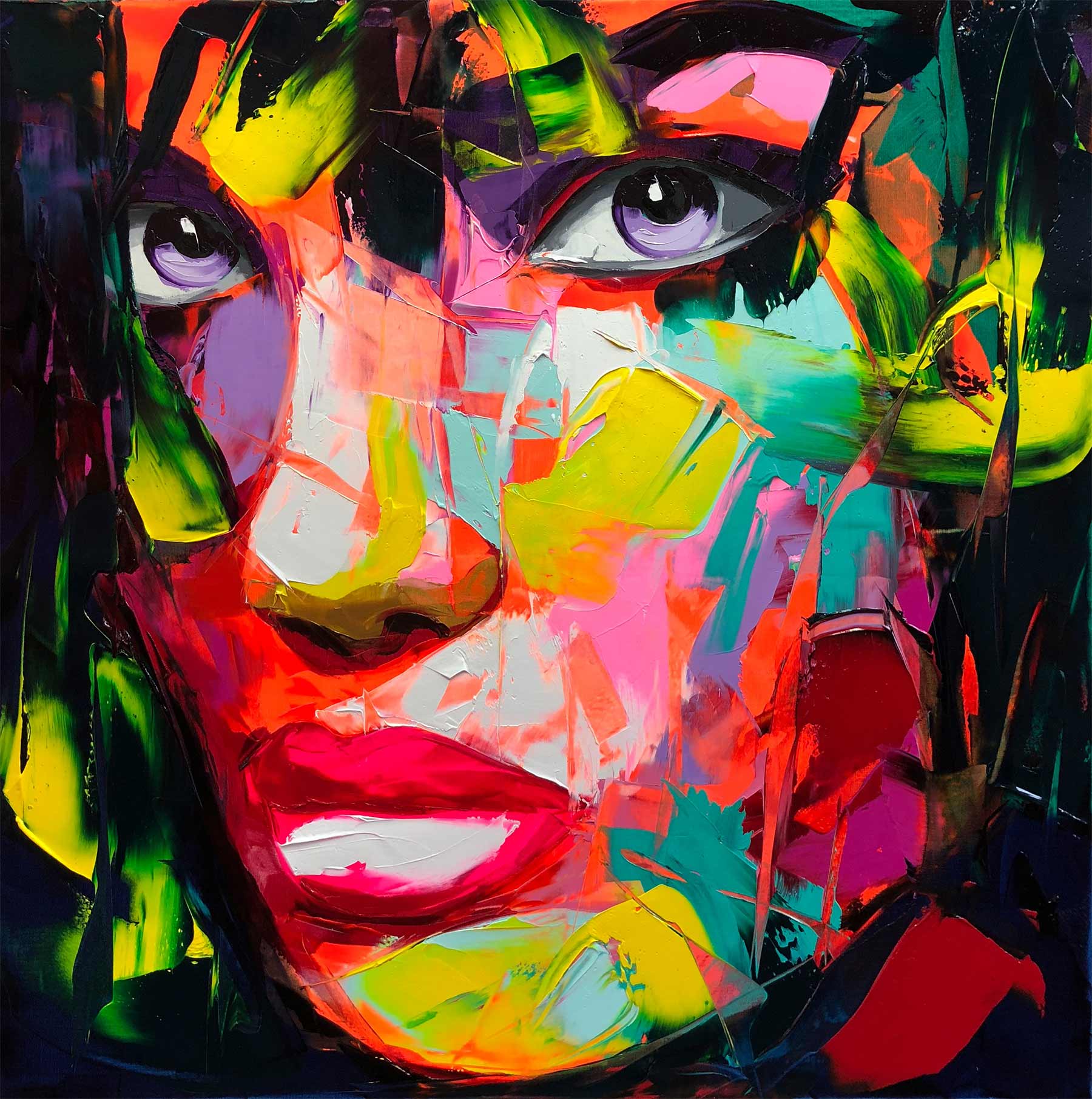 Mit dem Malspachtel zaubert die französische Künstlerin Françoise Nielly exzentrische Portraits auf die Leinwand, die neben der technisch gegebenen Strukturhaftigkeit auch vor allem mit knalligen Farbkontrasten auftrumpfen. Dabei wirkt es beinahe, als hätte Nielly lediglich ein paar Personen Farbe aufs Gesicht gepackt und sie fotografiert, denn zumindest, was die Proportionen und die Plastizität ihrer Motive angeht, wirkt das schon verdammt real.