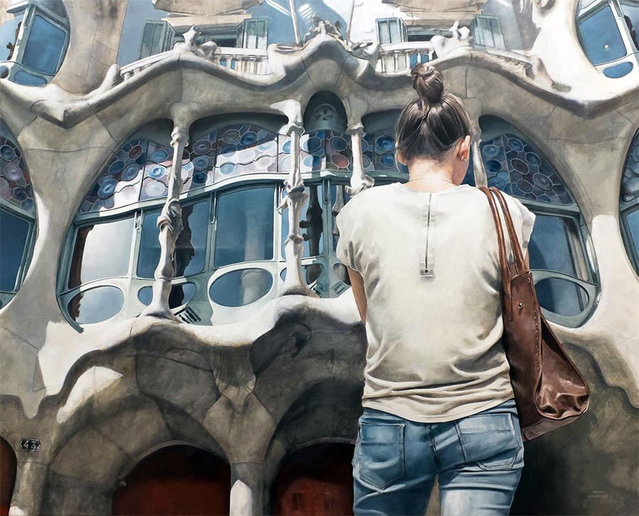 Beim flüchtigen Blick auf die Bilder von Marc Figueras erscheinen sie einem gar nicht soo realistisch. Nicht alle Bereiche sind wirklich detailliert ausgearbeitet, Fotorealismus ist eben nicht sein Ziel. Vielmehr besitzen die Motive eine realistische Wirkung. Die Zusammenstellung stimmt und je mehr man sich die einzelnen Bereiche anschaut, desto mehr Feinheiten kommen zum Vorschein, die alle passen. Reflektionen, Schattierungen, Proportionen, Aufbau – und ein paar schöne Rücken zum Entzücken.