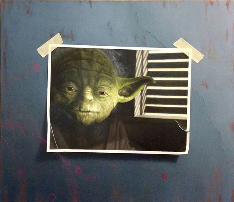 Das ist so wunderbar absurd, dass es wieder gut ist. Gemälde wie Fotos ist das eine aber Gemälde von Fotos, die mit Klebestreifen an die Wand geklebt worden sind? Das ist seltsam. Aber eben auch verdammt gut gemacht. Dahinter steckt der amerikanische Künstler Otto Duecker, der echte und fiktive Figuren der Öffentlichkeit auf Leinwand packt.