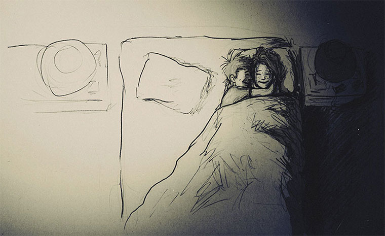„I started a daily sketch blog a while back when my wife, Jordin, was doing a ‘Photo 365’ project. Many of the drawings ended up being of the two os us. During that year, many people told us they felt like they got to know us better through the drawings, like they were a peek into our personal life.“