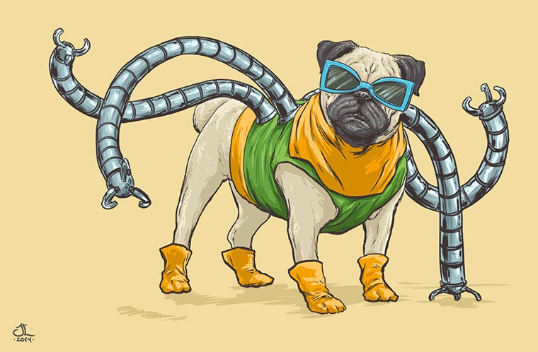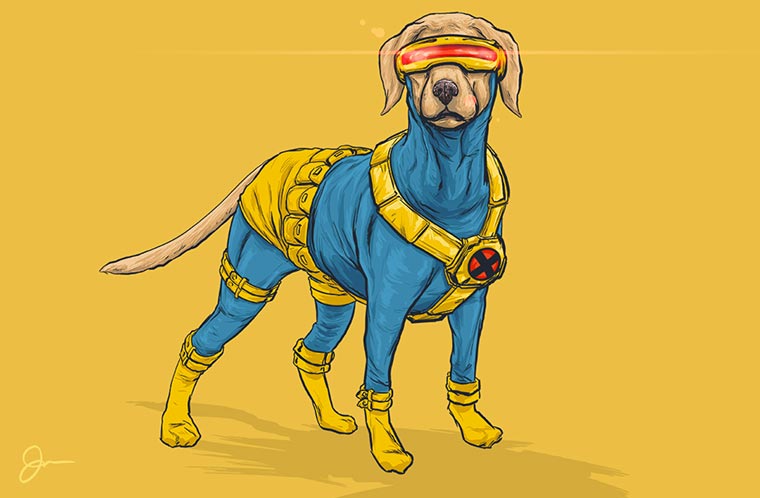 Der amerikanische Illustrator Josh Lynch liefert mit DOTMU: Dogs of the Marvel Universe eine wunderbare kleine Serie, die loyale Vierbeiner mit mehr oder weniger loyalen Comic-Figuren vereint. Die Mischlinge sind wohl eher lieblich als respekteinflößend geworden, aber die schauen schon verdammt cool aus!