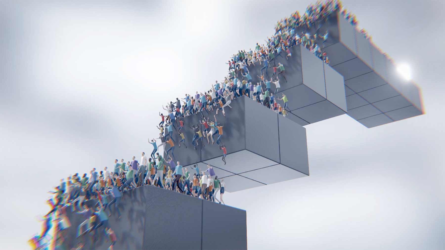Von der japanischen Firma tha ltd. soll noch dieses Jahr „HUMANITY™“ erscheinen, ein Spiel, indem man Massen an Menschen zu leuchtenden Feldern leitet. Oder sie sich gegenseitig erschlagen oder erschießen lässt. Das erinnert ein bisschen an diese ganzen Physik-Massen-Demos, könnte also lustig werden, je abstruser das „Lemming“-System fortgeführt wird. Hier der aktuelle Stand aus der Version 0.3, die schon einmal nicht allzu verkehrt ausschaut.