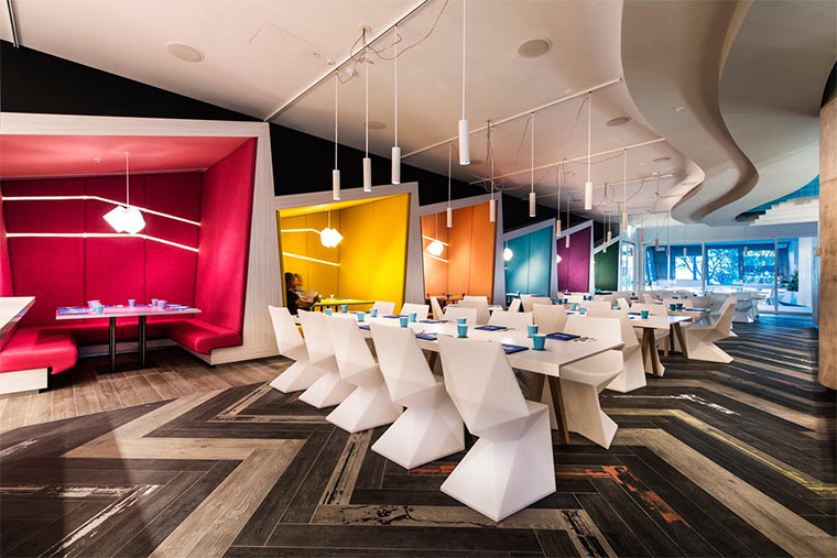 Das australische Architekturbüro Oldfield Knott hat dieses supermoderne Objekt in der Nähe von Perth zusammen gestellt. Dynamische Formen, klarer Aufbau mit unifarbenen Flächen und eben jeder Menge durchkonzepierter Farben. Also ich würde da gerne Urlaub machen oder zumindest einen chilligen Abend verbringen.