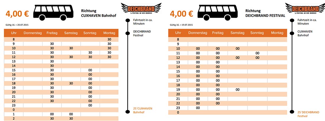 Richtig bescheuert wurde es dann aber abends. Wir haben im Hotel genächtigt und mussten also irgendwie wieder vom Gelände nach Cuxhaven kommen. Laut Deichbrand-Website ja kein Problem: