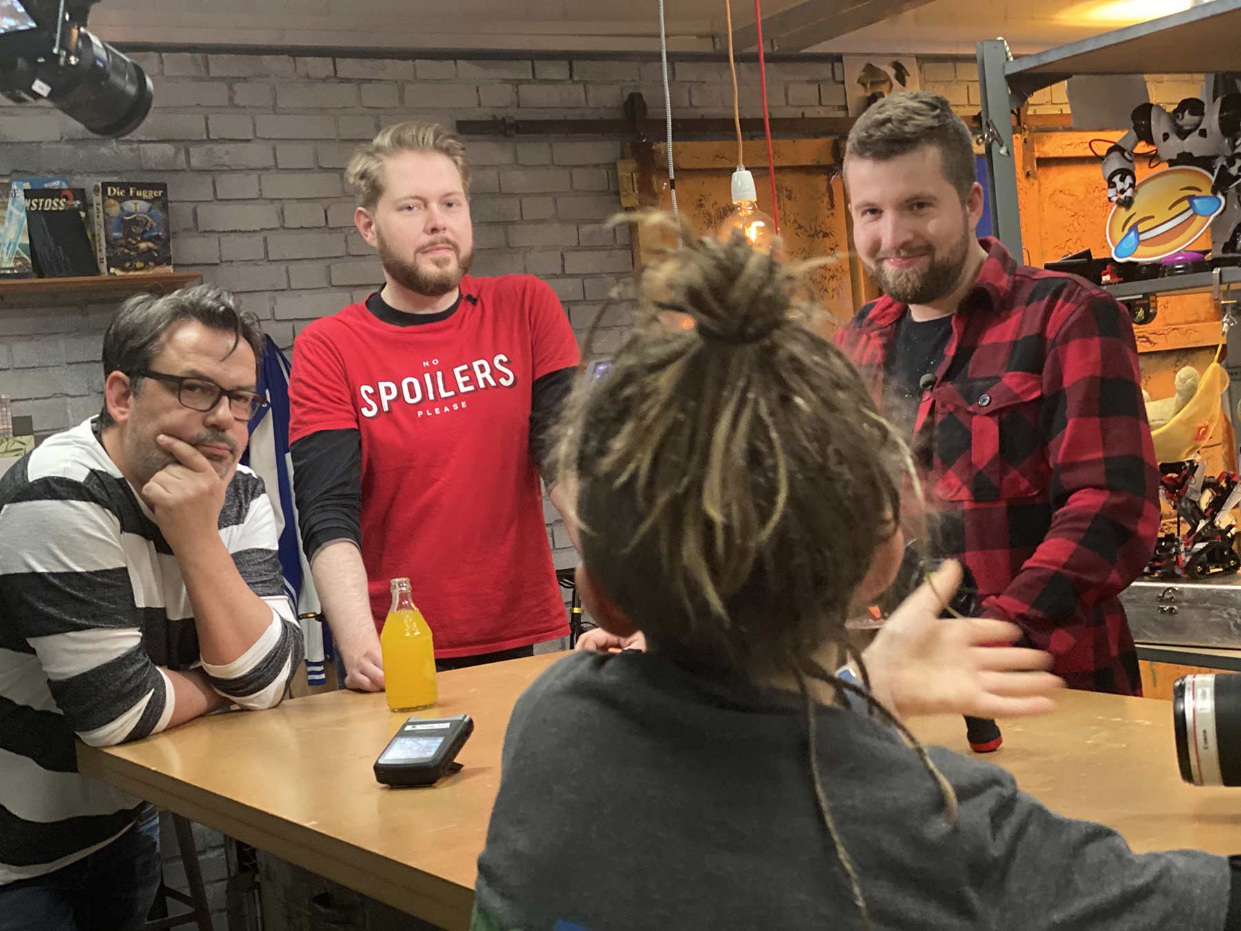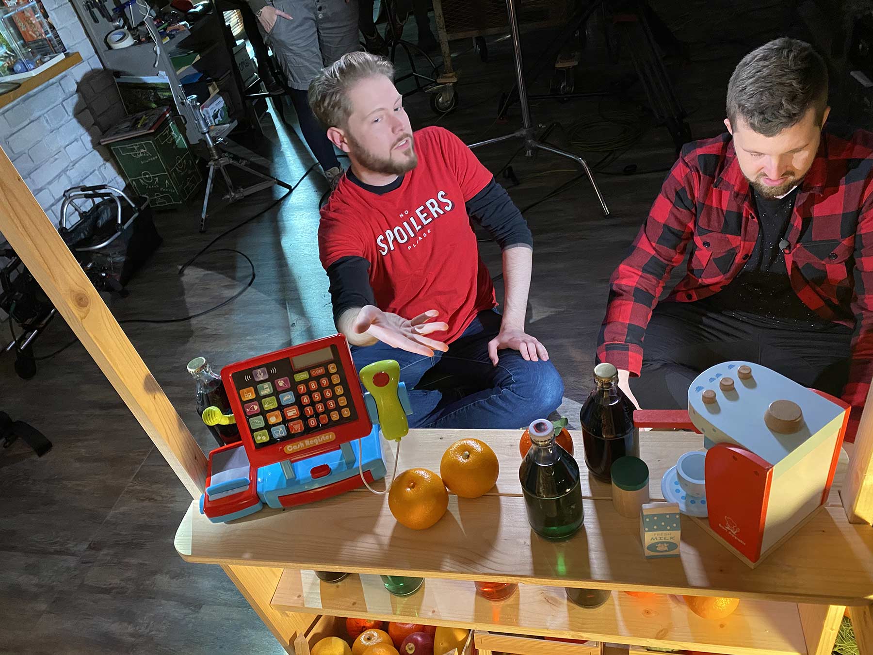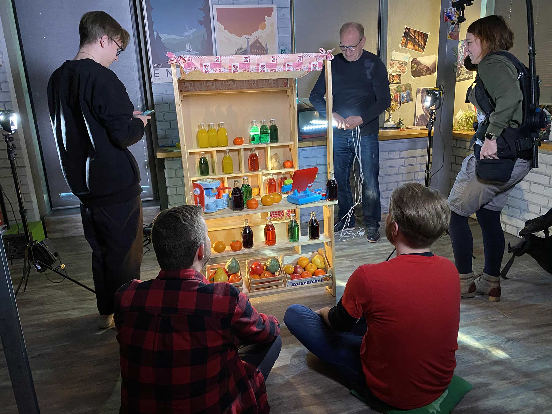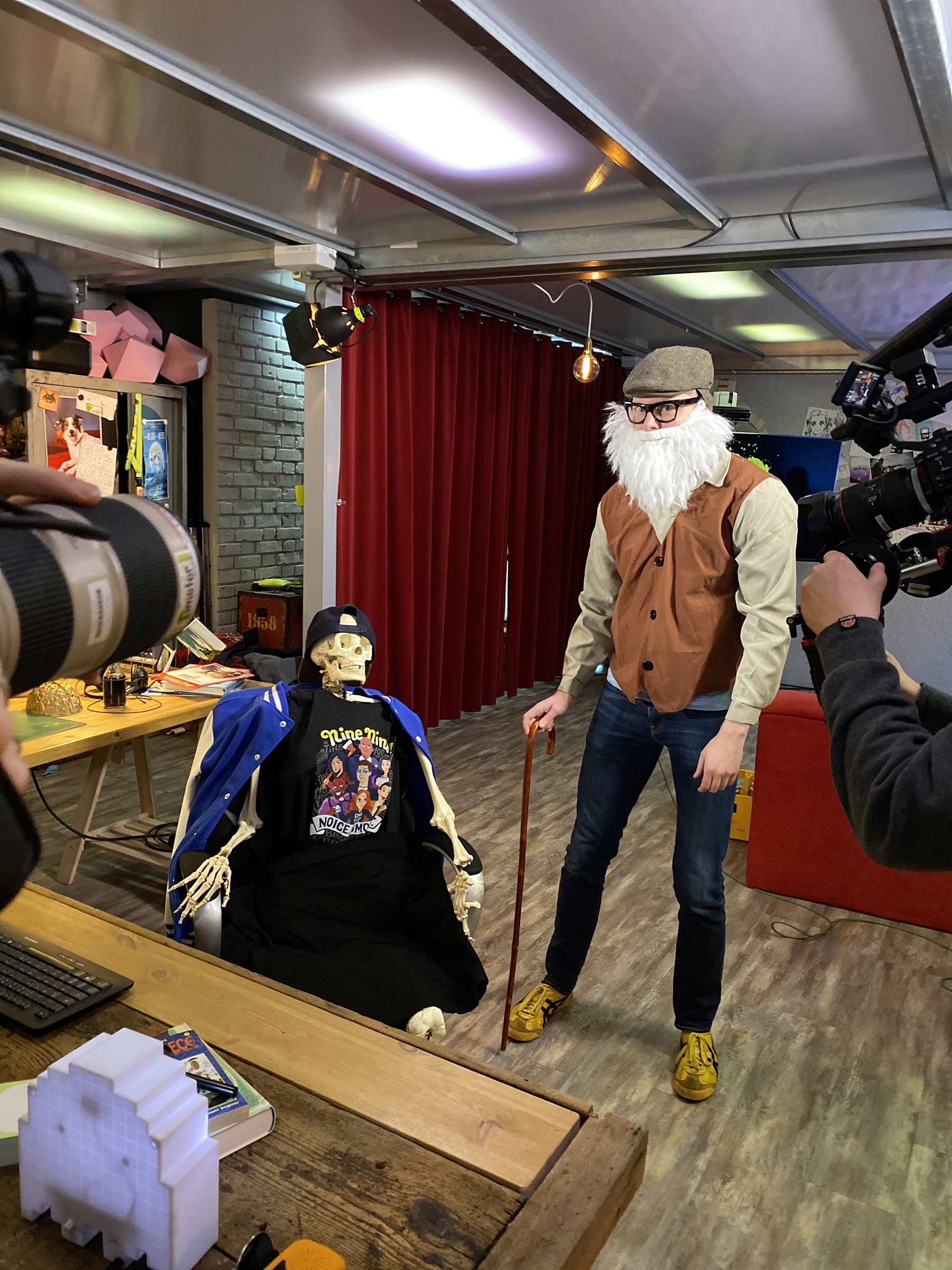 Hier noch ein paar bildliche Eindrücke vom Set. Vielleicht entdeckt ihr ja auch meine LangweileDich.net-Tasche, die ich für den Dreh einer Szene in der Kulisse versteckt hatte…