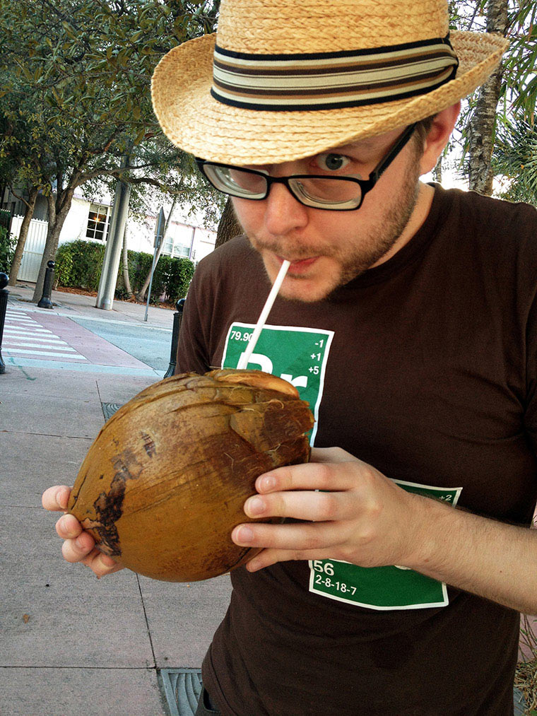 Wir schreiben Ende Januar 2013 und sind bereits einige Tage in Miami. Direkt beim ersten Strandgang waren uns (oh Überraschung!) die vielen Palmen ins Auge gefallen. Und die vielen Kokosnüsse, die am Boden liegen. Doch jede war bereits aufgeschlagen, hohl oder verdorben. Unser Gedanke, dass doch auch mal eine reife von der Palme fallen muss, wurde schnell verworfen, als wir die Verkäufer mit ihren Einkaufswagen voller Kokosnüsse an der Strandpromenade angetroffen haben. Die waren im Verkauf nicht wirklich teuer, aber für uns hatte das nicht das gleiche Feeling, wie wenn man in der „freien Natur“ selbst eine schlägt.