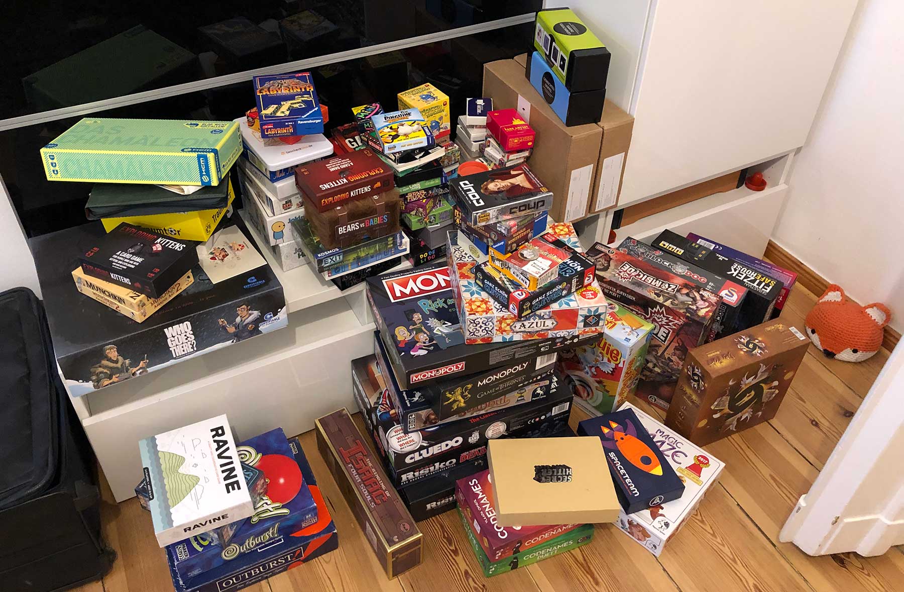 Spiele sind auch das richtige Stichwort, denn eigentlich war für Samstag ein fetter Spieleabend mit ~10 Freunden geplant. Den mussten wir dann leider kurzfristig absagen (Krankheit, ihr wisst schon), aber aufgeschoben ist nicht aufgehoben. Das ließ wenigstens Zeit, mal die hauseigene Spielesituation etwas zu ordnen und Titel auszusortieren (nein, das auf dem Bild sind NICHT die aussortierten Titel…).