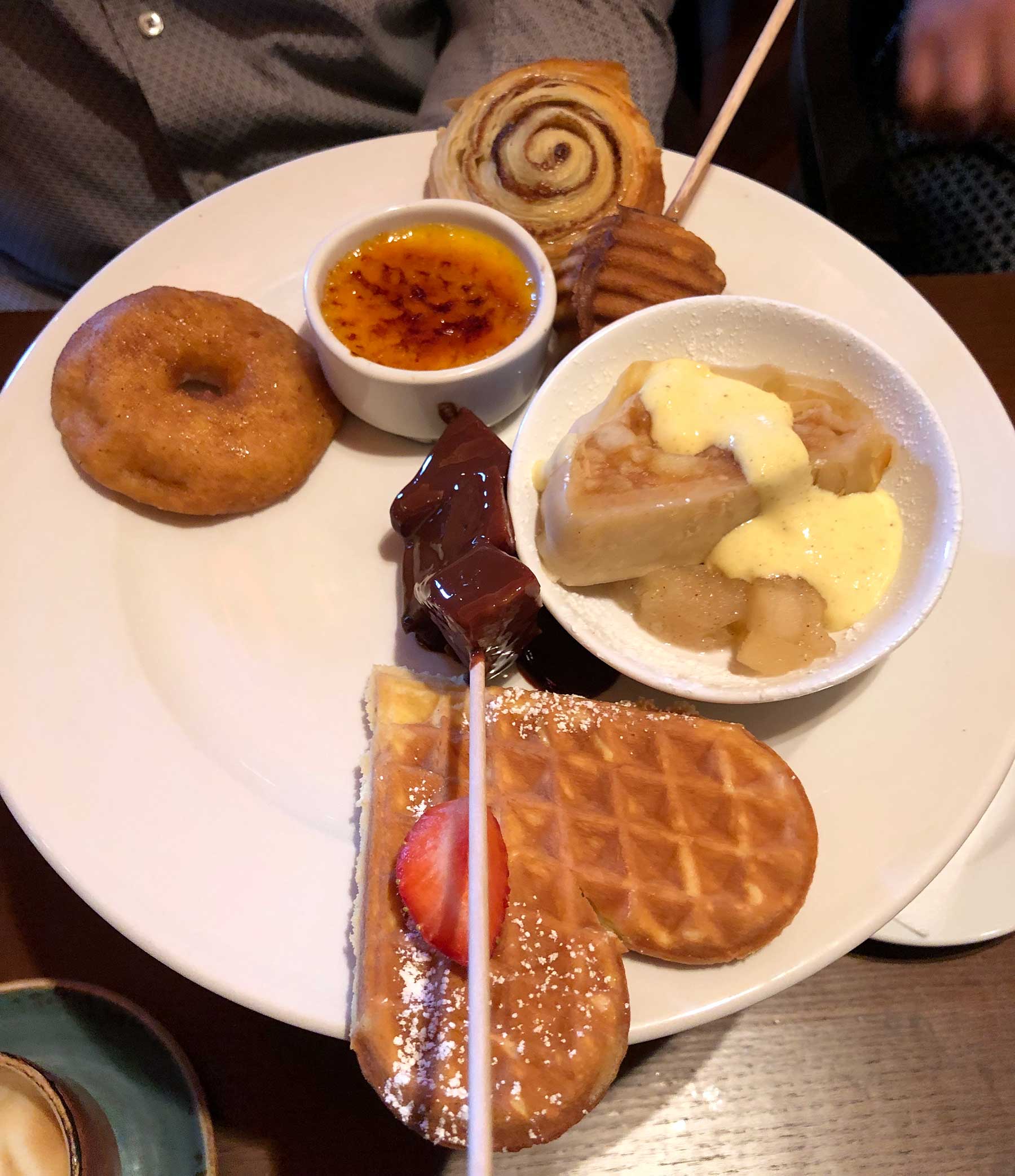 Heute ging es zum Brunchen, was super lecker war. Auch hier war ich recht fotofaul, obwohl das Essen es allemal zugelassen hätte. Aber viel lieber habe ich mit Gilly und weiteren Freunden über Videotheken, vegane Burger oder Urlaube gesprochen. Und ich durfte Gillys neue Leica-Kamera halten, mit der er das Bild ganz oben im Beitrag „einfach mal so“ ohne große Vorbereitung per Knopfdruck geschossen hat. Schon Wahnsinn, das Teil. Ach, und neben einer Blog- und einer Podcast-Idee ist dann doch auch noch ein kleines Bild von einem klitzeklitzekleinen Teil des reichhaltigen Buffets rausgesprungen: