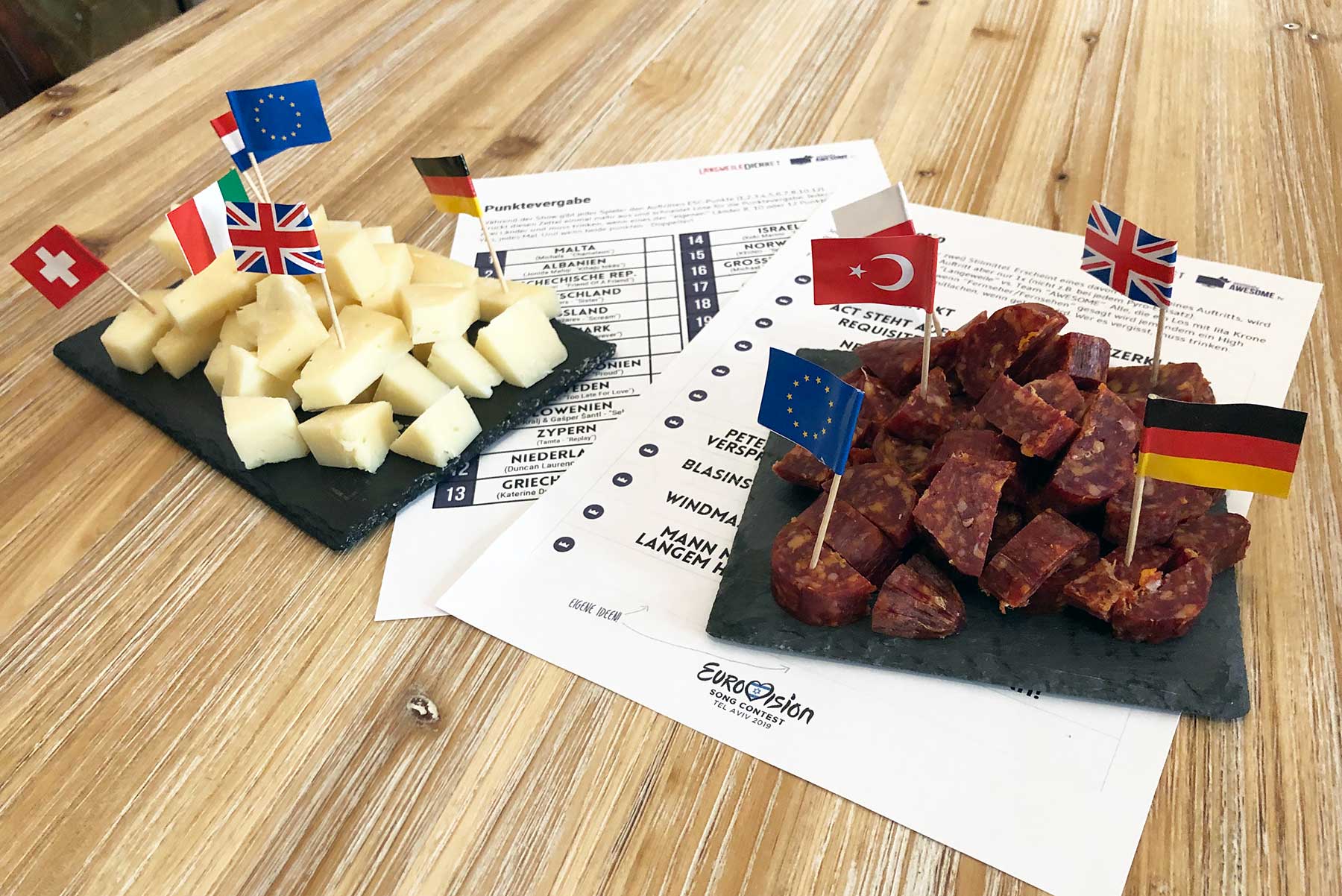 Samstag stand dann endlich mal wieder der ESC und somit auch unser traditionelles Trink- & Tippspiel an. Wie das irgendwie immer ist, lag das Event monatelang in weiter Ferne und plötzlich war es da. So schnell, dass ich dann doch nicht alles fein säuberlich in das Spiel einbauen und vor allem visuell abändern konnte, wie ich wollte. Aber über 2.400 Mal wurde das PDF heruntergeladen, was etwa doppelt so viel wie 2018 ist – sehr stark!