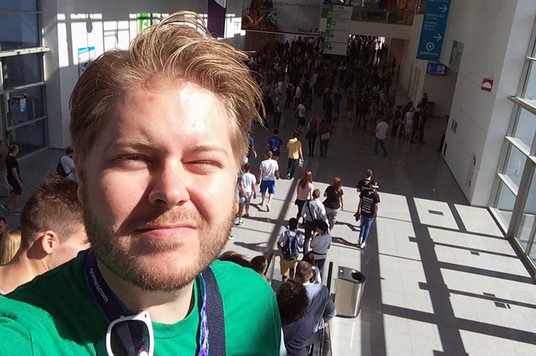 Aber eines nach dem anderen. Zunächst die Sache, auf die ich mich so gefreut hatte: Gamescom (Mehr dazu dort, hier nur das Bild eines derart blendend aufgelegten Bloggers, der braucht gar keine Sonnenbrille, obwohl er eine umhängen hat!). Im Vorfeld habe ich den Köln-Besuch genutzt um den positiv verrückten Fotografen-Blogger-Freund Ben zu treffen und ein bisschen zu burgern und zu bieren Kölsch zu trinken. Dazu waren wir bei Freddy Schilling – sehr leckerer Ziegenkäseburger, jedoch sehr subleckere Kartoffel-Verarbeitungen (Pommes wie Rosmarin-Variante eher so lala).