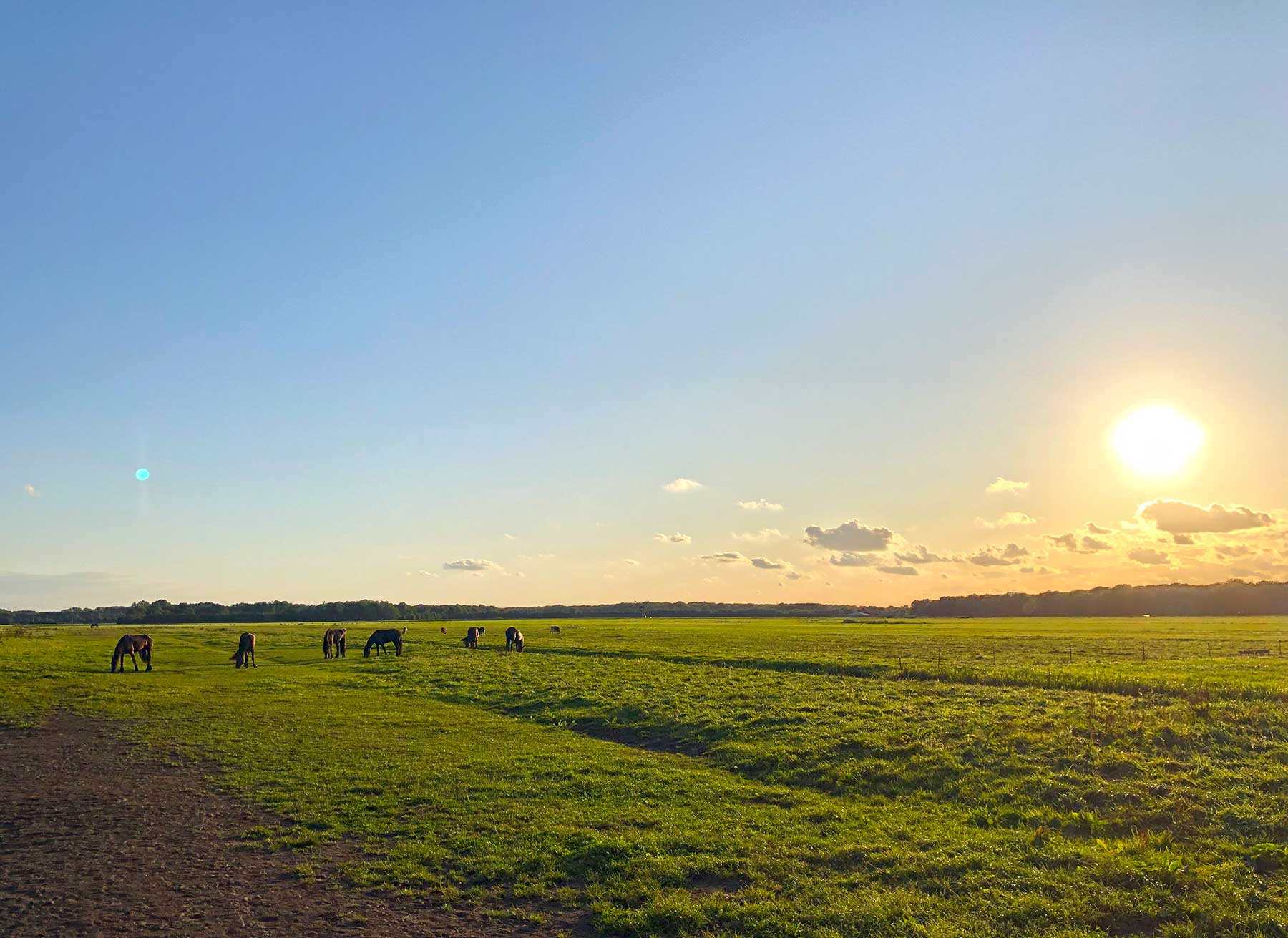 Sonntag haben wir für die letzten Tage unseres Urlaubs die Location gewechselt. Bei der Suche nach einer möglichen Bleibe zwischen Den Haag und dem Flughafen Amsterdam kamen wir auf das Zug-Umstiegs-Örtchen mit dem schönen Namen „Leiden“. Dort noch ein ganzes Stück weiter raus haben wir uns auf einer Pferde-Ranch niedergelassen. Quasi eine Art Bauernhof, der nebst den Pferden auch Ausblick auf Kühe, (erfolgreich) Mäuse jagende Katzen und Hühner ermöglicht hat.