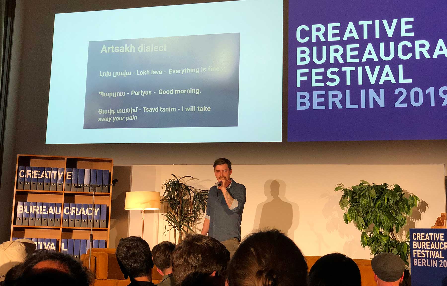 Freitag ging es zum „Creative Bureaucracy Festival“. Nicht, weil ich Bürokratie so geil fände, sondern, weil dort eine Sonderausgabe des „Reporter Slam“ stattfand. Der ist ganz interessant, da Journalisten da auf möglichst unterhaltsame Art und Weise von ihren skurrilsten Recherchen berichten. Da war dann zum Beispiel jemand von „extra-3“, der gleich mehrere „reale Irrsinne“ aufgedeckt hatte oder ein Dorf in Sachsen-Anhalt, das zur Hälfte zur Brandenburg gehört, die jedoch kein schnelles Internet zugesprochen bekommen hat. Verwirrend aber zum Kopfschütteln lustig.