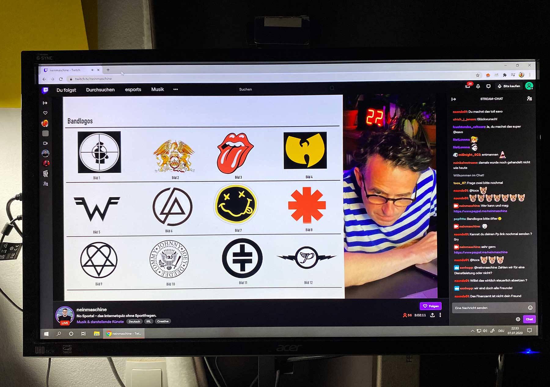 Spontan haben wir auch noch beim Online-Quiz des Münsteraner DJs Eavo mitgemacht, der auf Twitch unter dem Namen „Neinmaschine“ immer mal zu „No Sports“ einlädt. Da gibt es dann alles mögliche an Fragen, nur eben (leider..) nichts aus dem Sport-Bereich (wer hätte es gedacht…?!). Dafür aber eben auch ein paar Musikfragen und bei der hier haben wir tatsächlich mal alles gewusst richtig gehabt. Trotzdem wurde es am Ende nur der drittletzte Platz, aber das führe ich einfach mal darauf zurück, dass wir lediglich zu zweit waren… Jauchz.