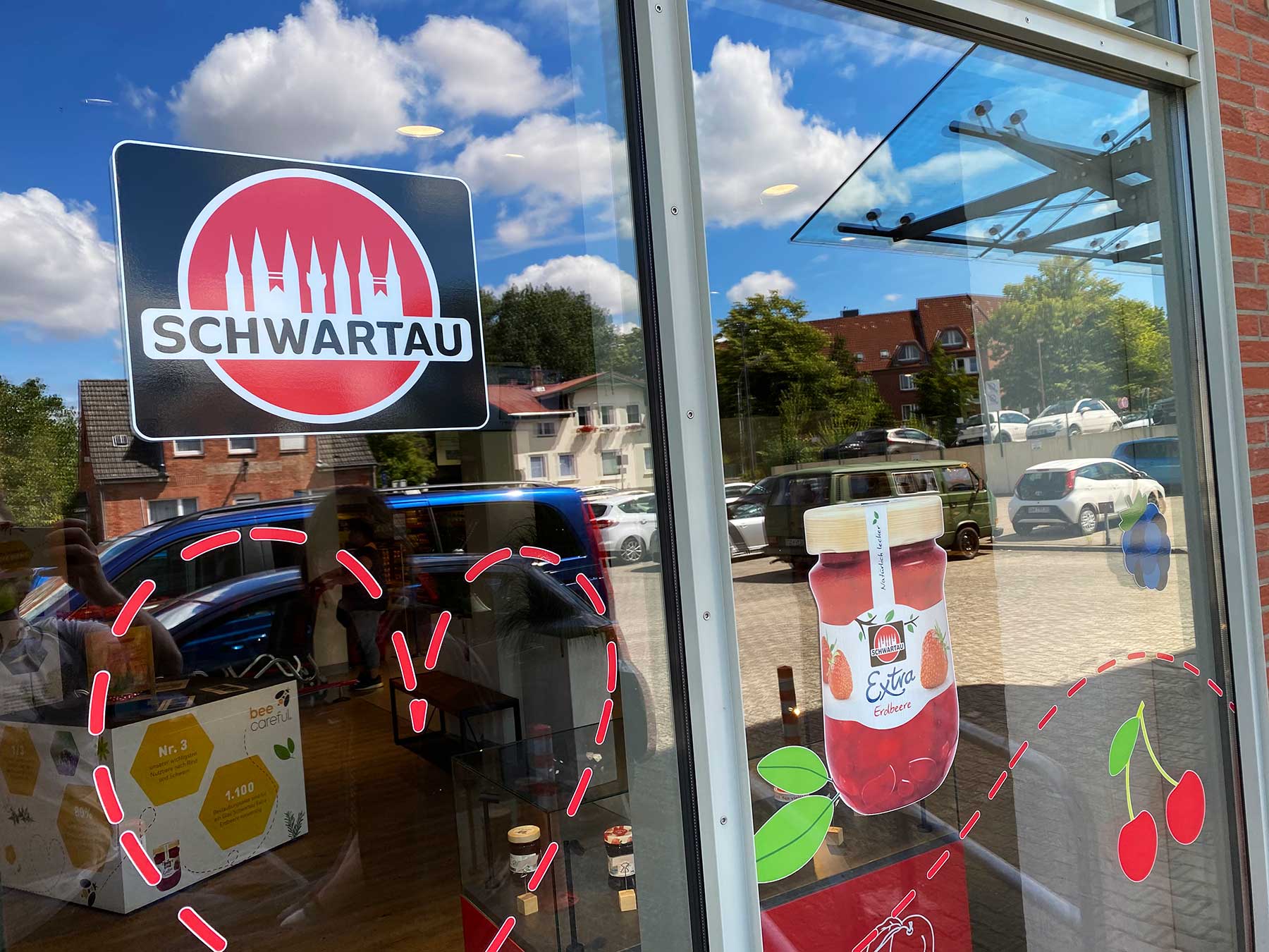Weiteres kleines Highlight: Die Fahrt nach Bad Schwartau, wo die Schwartau-Marmelade nicht nur abgefüllt, sondern auch im Werksverkauf angeboten wird. Gerade bei den 2.Wahl-Produkten konnten wir ein paar Schnapper machen, auch was Corny-Riegel anbetrifft, die den Rest der Urlaubstage als Nahrungsgrundlage dienen sollten.