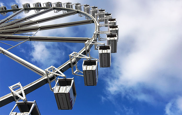 Sehr gefreut hatten wir uns auf den „Dom“. Die quartalsweise Kirmes auf dem Heiligengeistfeld fehlt uns sehr, machen wir doch traditionsgemäß immer die Greifarmautomaten unsicher. Da unserer Herbergsmutter Kinder erwartet, haben wir sogar eine Ausrede bzw. einen Nutzen für das Herankarren von massenhaft Plüsch und hatten unsere Jagd darauf bereits mittels Schilderung gigantischer Beute-Haufen angekündigt. Nur doof: der Dom startet erst nächste Woche. Irgendwie hatten wir uns verguckt. Traurig, dass Plüschtiere, Kaminbrot und Schokobanane ausbleiben, haben wir den Arbeitern beim Aufbau zugeschaut und immerhin ein schönes Foto vom menschenleeren Riesenrad schießen können.