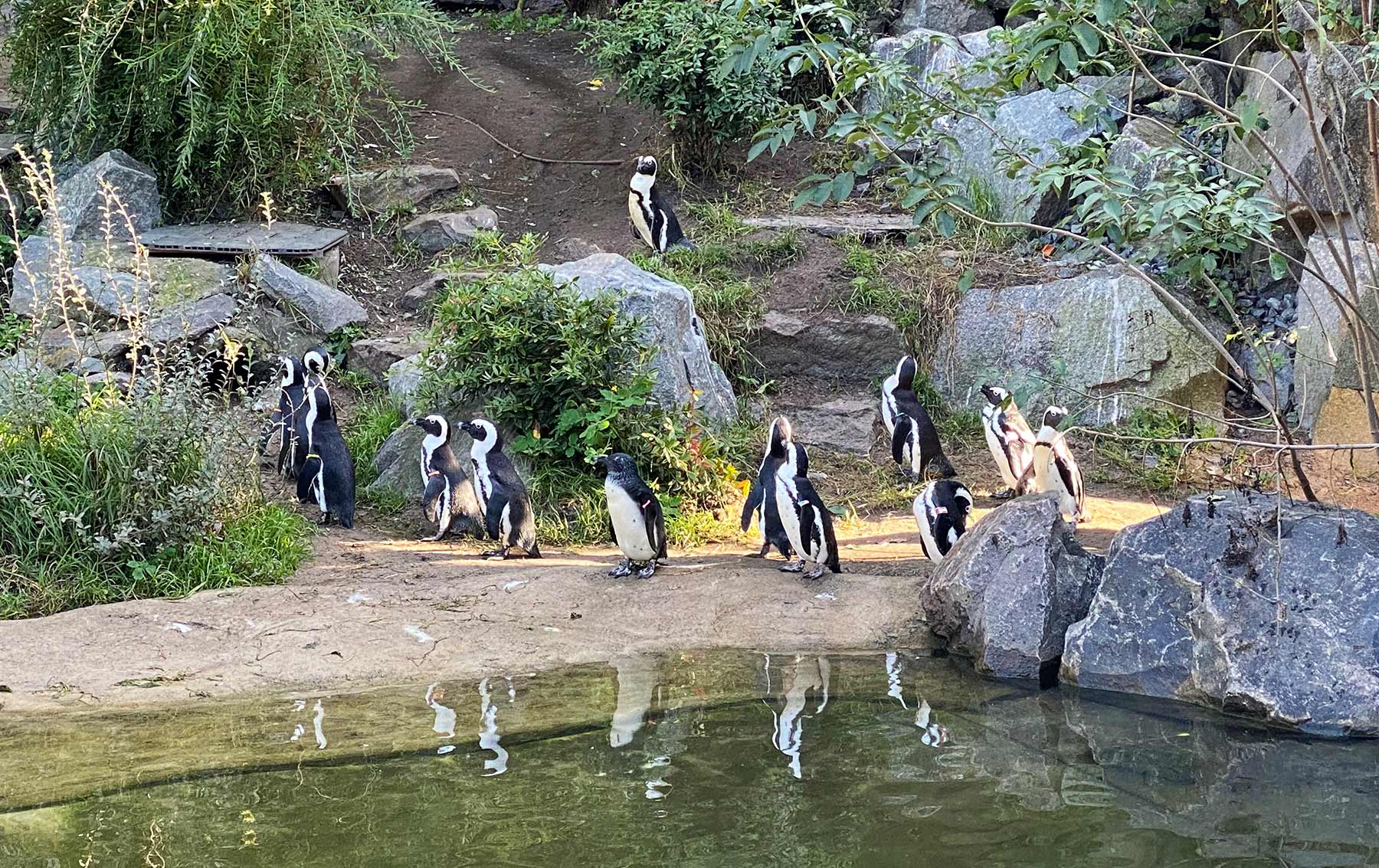 Achso, ja, und im Tierpark waren wir auch noch! Da hatten wir ziemlich Glück, dass die eigentlich nur für „April bis September“ angegebene Fütterung der kleinen Pandas trotz Oktober-Datum stattgefunden hat und einer der Kleinen sogar zum Futtern in Fotografiernähe ran kam. Nur doof, dass ich an dem Tag gehadert hatte, die Spiegelreflex mitzunehmen und das neue Handy noch nicht da war… Aber für ein zwei Schnappschüsse hat es gereicht.