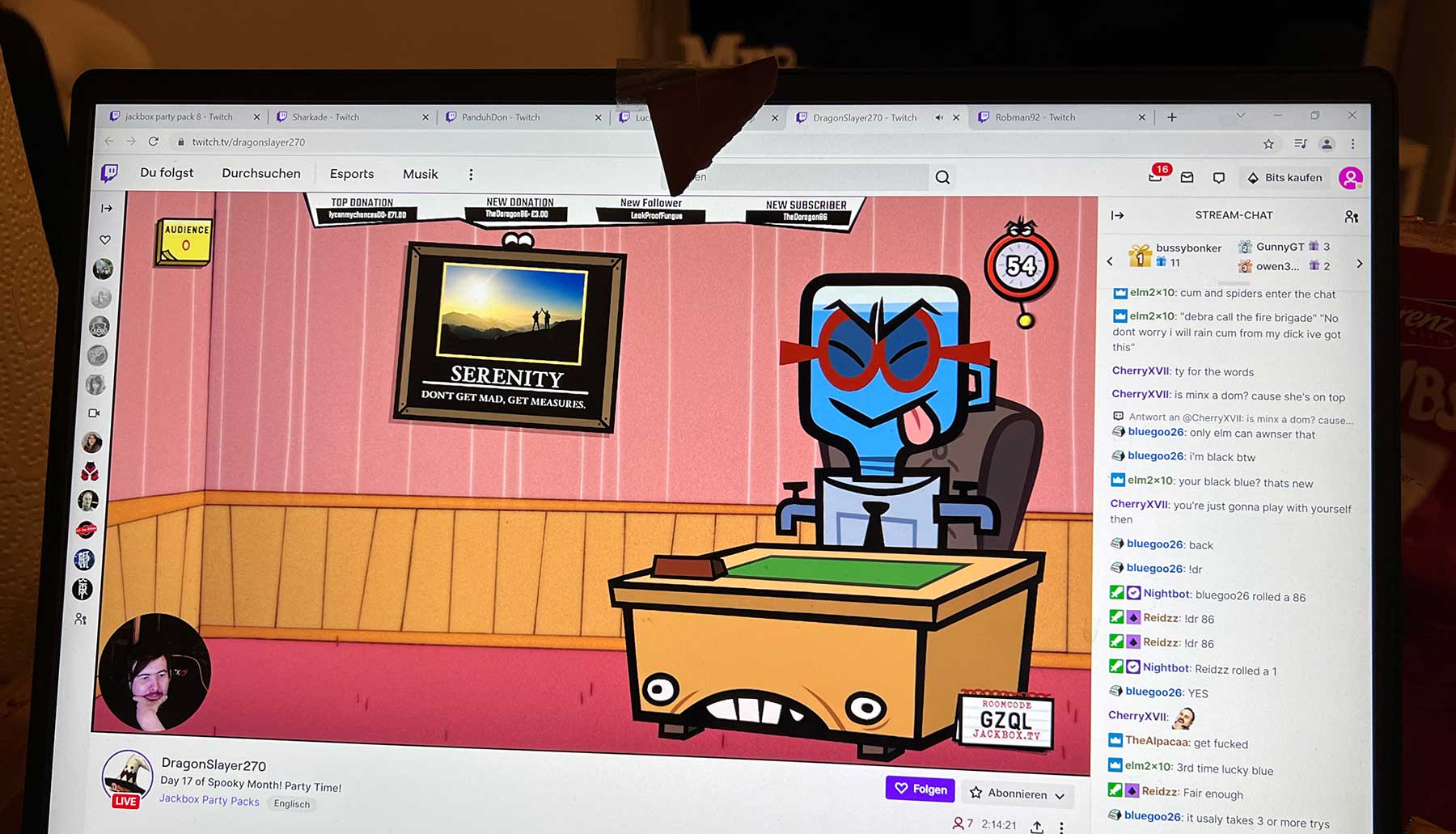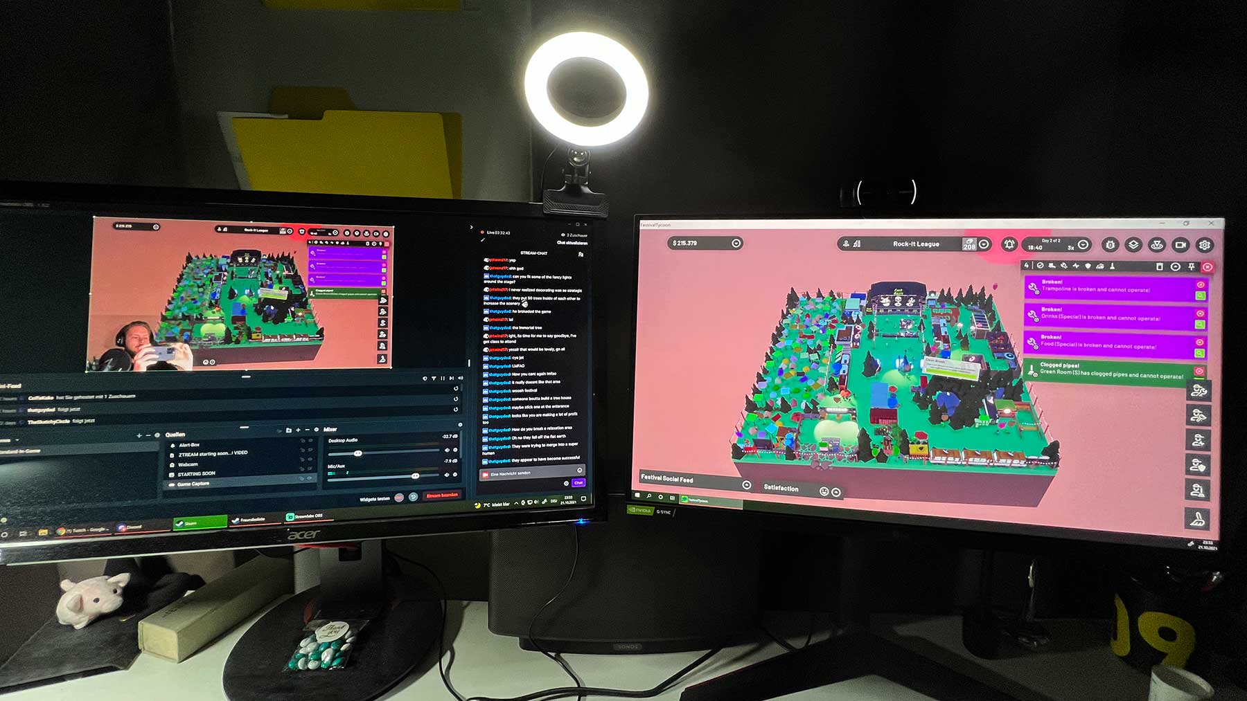 Spaß hat mir auch mein Stream diese Woche gemacht, auch wenn ich zugeben muss, dass ich etwas enttäuscht ob des Zuspruches war. Mir war klar, dass bei meinem ersten Stream auch einige Leute zugegen waren, weil es eben mein erster war und ich zudem in der „Rocket League“-Szene bislang recht gesichtslos unterwegs war. Aber so viele hatten im Nachgang geschrieben, dass sie es leider verpasst haben und beim nächsten dabei sein werden! Also habe ich es dieses Mal nicht spontan gemacht, sondern immer wieder im Vorlauf angekündigt. Letztlich waren maximal sechs Zuschauer:innen gleichzeitig zugegen, im Schnitt lediglich zwei. War dennoch spaßig, zumal ich neben „Rocket League“ auch „Festival Tycoon“ gespielt habe. Anfang November kann es sein, dass ich einige Tage Strohwitwer bin, da schaue ich mal, dass ich eine ganze Woche mit abendlichen Streams mache – und vor allem auch dem neuen „Jackbox Party Pack 8“!