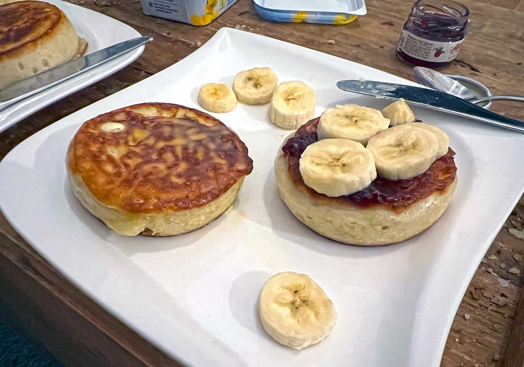 Am letzten Wochenende haben wir Crumpets gemacht! Mein Lieblingsmädchen hat Formen dafür zu Weihnachten erhalten, die wir erstmals ausgetestet haben. Rein von der Form haben die britischen Frühstücksfladen auch direkt erstaunlich passend ausgesehen. Geschmacklich war das auch gut, hat aber noch etwas Luft nach Oben. Beim nächsten Mal dann lieber Trockenhefe und zwei Mehlarten zum Mischen. Macht aber Lust auf mehr!