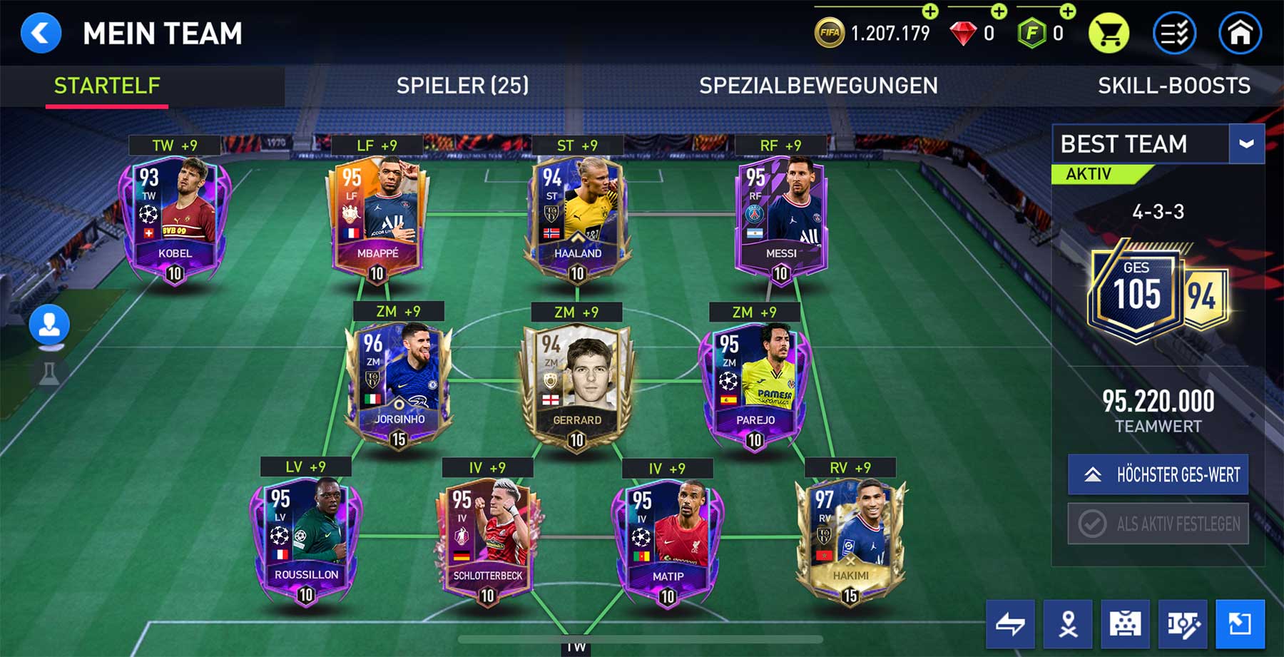 Um die Spielereihe komplett zu machen füge ich noch schnell „Fifa 22 Mobile“ ein. Die App habe ich jetzt aber tatsächlich gelöscht bekommen! Nicht, dass ich das technisch nicht hinbekommen hätte, aber das Punkte-und-Spieler-Sammelspielchen hat schon einen gewissen Suchtfaktor. Vor allem, wenn man einen derartigen Vervollständigungsdrang besitzt, wie ich ihn habe. Aber mit dieser finalen Mannschaft hatte ich das Gefühl, bis auf Torwart und zentrales Mittelfeld nur noch sehr schwer Verbesserungen hinzubekommen, so dass ich mir die viele Zeit lieber spare, die da reinfließen würde…