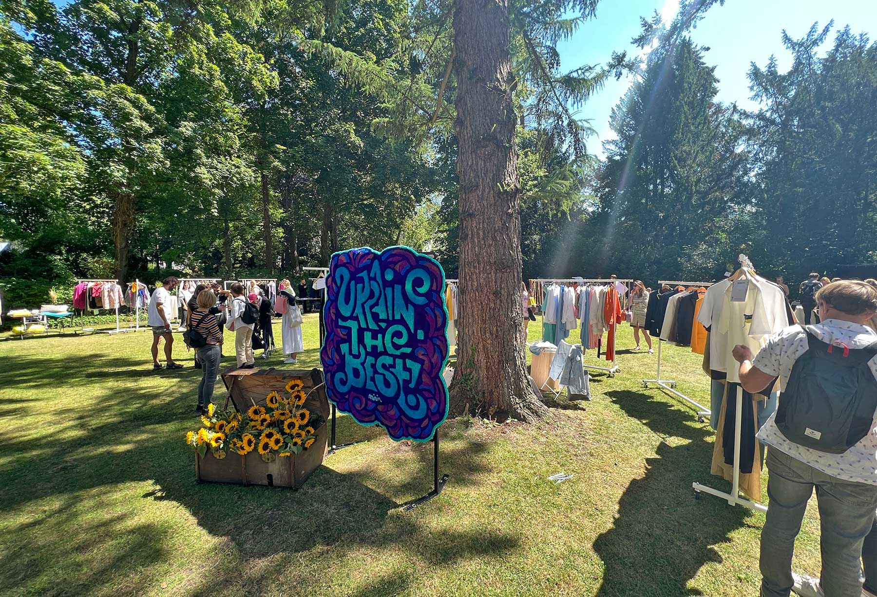 Dann waren wir noch auf einem kleinen Event am (und später auch selbst im) Grunewald, dessen Einnahmen der Ukraine-Hilfe zugute kommen. Da gab es Kunst, Kleidung, Essen, Interviews und Workshops von Ukrainer:innen in typischer Landesart. Coole Sache!