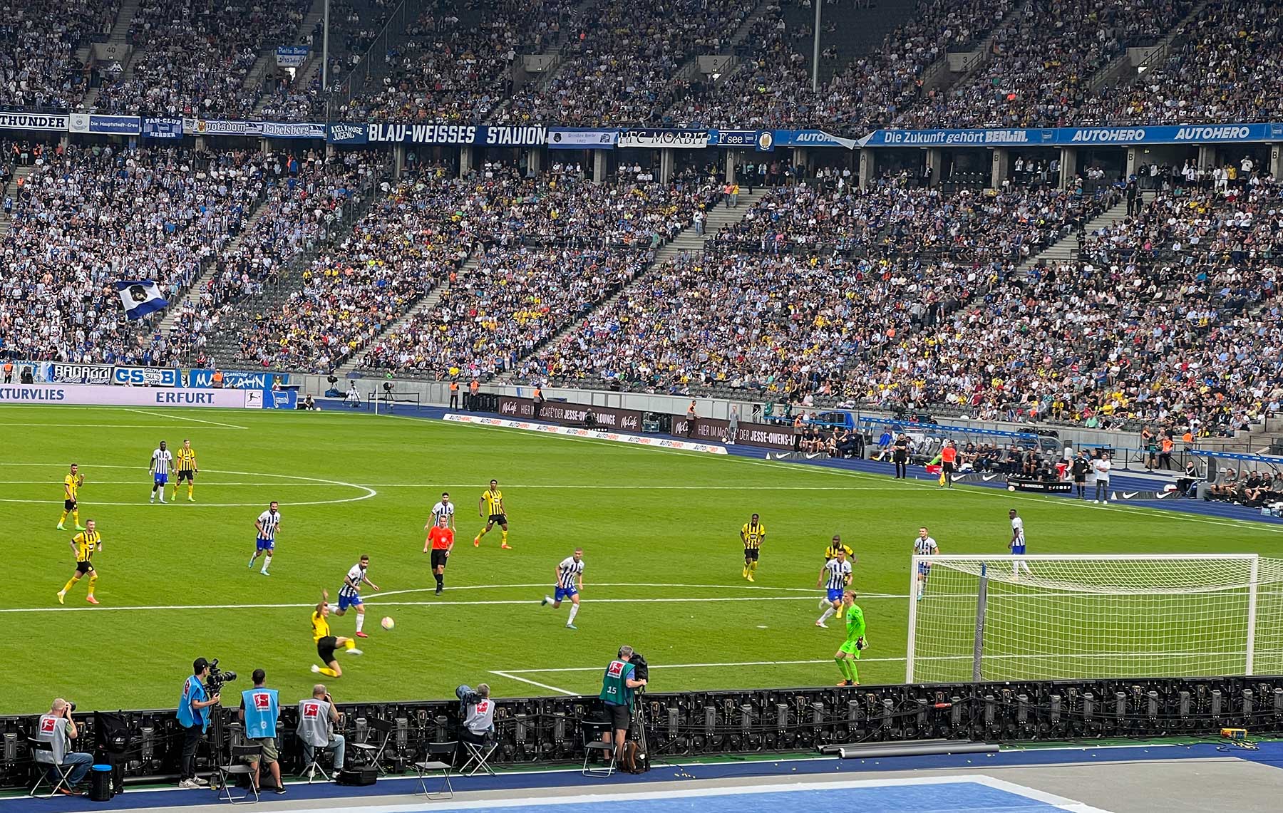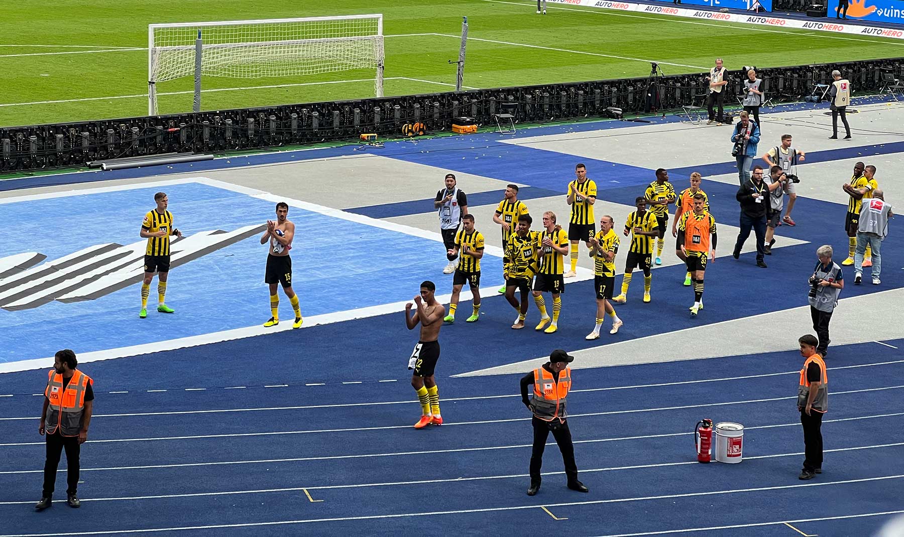 Das Highlight des Wochenendes war für uns alle das Bundesligaspiel meines BVB im Olympiastadion. Das letzte Mal war ich an einem bitterkalten Februartag zu einem recht schnöden 1:1 da (wobei da immerhin Jadon Sancho seinen ersten Assist hatte verbuchen können!). Dieses Mal war alles besser! Ergebnis, Wetter, Stimmung. Zwischendurch haben wir im Nebengästeblock sogar Wechselgesang mit dem richtigen Ultra-Gästeblock hinbekommen – Marathontor-Eingang sei Dank.