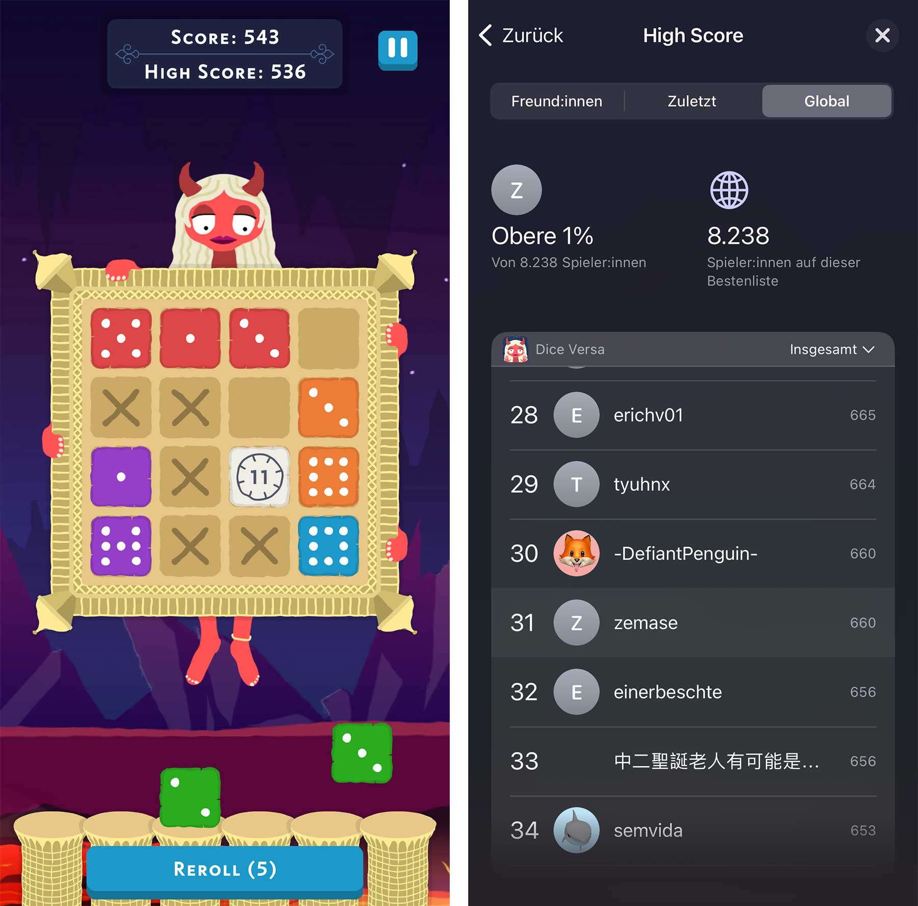 Einen neuen Rekord bei „Dice Versa“ konnte ich übrigens auch aufstellen. Irgendwie scheint da also doch noch mehr drin zu sein (obwohl ich das Spiel eigentlich nur wenige Male die Woche in Zeiten von Langeweile spiele…).