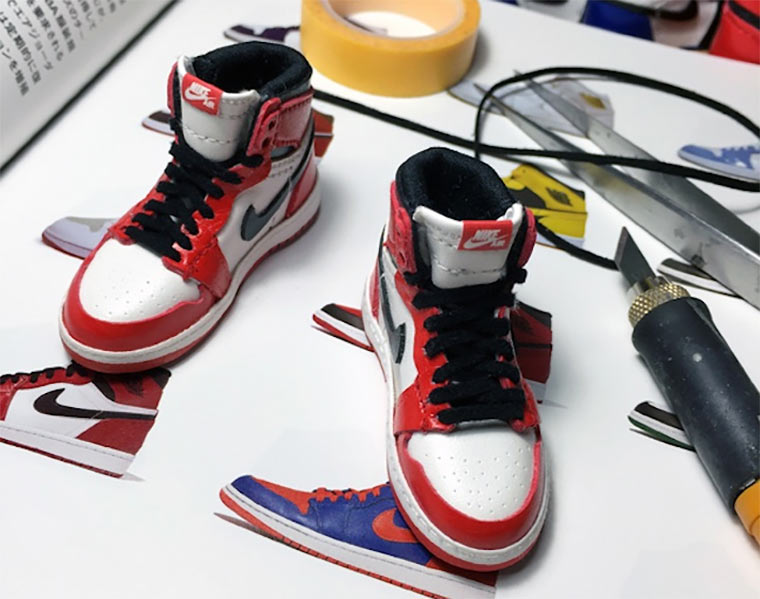 Toy Artist Kiddo aus Seoul erstellt Sneaker, die in jeden Schuhschrank passen. Miniatur-Ausgaben der Originale von Nike, Puma & Co. im Format von 1:6. Aber nicht einfach in Holz geschnitzt oder Metall gegossen und dann angemalt. Das wäre zu einfach und langweilig. Er baut die Schuhe tatsäschlich mit Leder, Schnürsenkeln und Stoffen zusammen. Quasi der kleinste Schuhmacher der Welt. Vermutlich… Sehr cool finde ich die Bilder, in denen die Original-Vorlagen direkt zum Größenvergleich nebendran stehen.