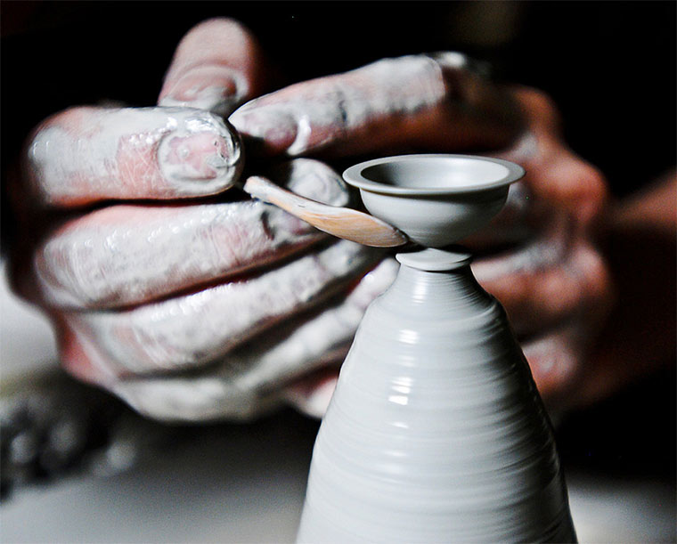 „Throwing small really allows me to focus on the shape and form of a piece. It is a very meditative form of creation. I enjoy the process of making small vases and bowls that without any scale or context look exactly like their larger counterpart in detail and proportion.“