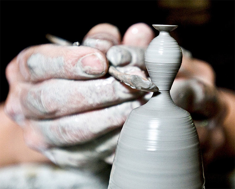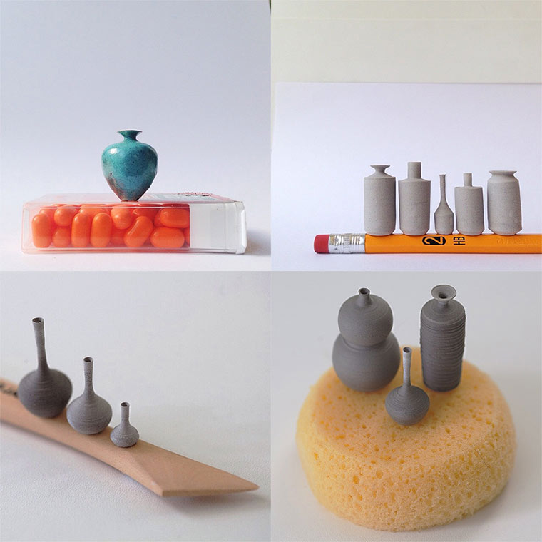 Ursprünglich hatte Jon Almeda mit seiner Töpferei Großes im Sinn. Je größer die Gebilde, desto besser. Als er dann über ein Buch mit dem Titel Creating Ceramic Miniatures gestolpert war, hat sich seine Ausrichtung um 180 Grad gedreht. Ab jetzt heißt es kleiner, kleiner, kleiner. Da staunt selbst der Geist von Ober-Romantik-Töpfer Sam…