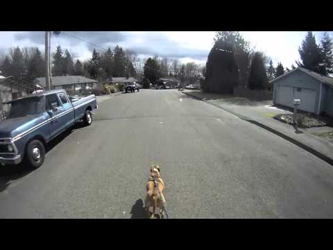 Naja, so wirklich neu ist die Idee nicht, sich von seinem Hund auf dem Skateboard stehend ziehen zu lassen. Aber mit einer GoPro-Kamera auf dem Kopf, macht das schon was her. Jetzt noch etwas pfiffiger geschnitten, ein bisschen Musik drunter gelegt und fertig ist das Gute-Laune-Video.