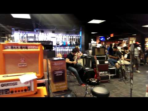 Nach dem Jingle folgt auch der Soundtrack zum Montag. Das vorhin war ja eher ein Geräusch, hier kommen ganz viele. Gleichzeitig. Ein großer Gitarrenladen, in dem etliche Leute „Ausprobieren“ (Instrumente sowie das Musizieren an sich, wie es scheint). Und das Schlimme an dieser Sache: Leute, die in diesem Laden arbeiten, haben das jeden. Verdammten. Tag. Ihr armen Säcke!
