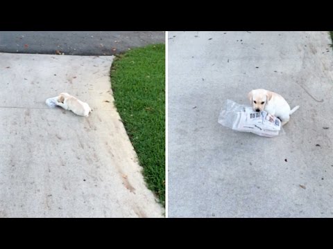 Morgens erst einmal Zeitung lesen. Hahaha – sorry, natürlich nur ein Scherz. Aber einem Welpen dabei zuzuschauen, wie es das Stück Totholz mit alten Nachrichten drauf zu Herrchen ziehen will, lässt schon fast auf einen Fortbestand des alten Mediums hoffen.