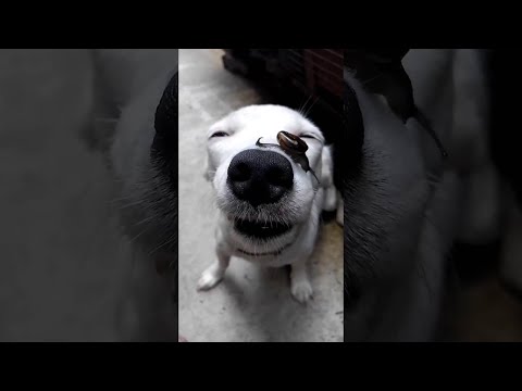 Aber okay – enden wir wie so oft lieber mit einer süß-toll-positiven Abschlussnote. Und damit das Bild der Hunde wieder ins rechte Unterhaltungslicht gesetzt wird, hier einer, der eine Schnecke auf der Nase hat und putzig guckt. Zufrieden? Alles wird gut!
