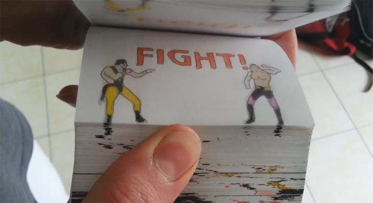 Etoilec1 zeigt uns, dass auch heutzutage Daumenkinos noch Spaß machen können. Hier ein eindrucksvoller Fight im Mortal Kombat-Style, was wiederum bedeutet, dass es durchaus grafisch zur Sache geht. Und das, obwohl nur Buntstifte im Einsatz sind…