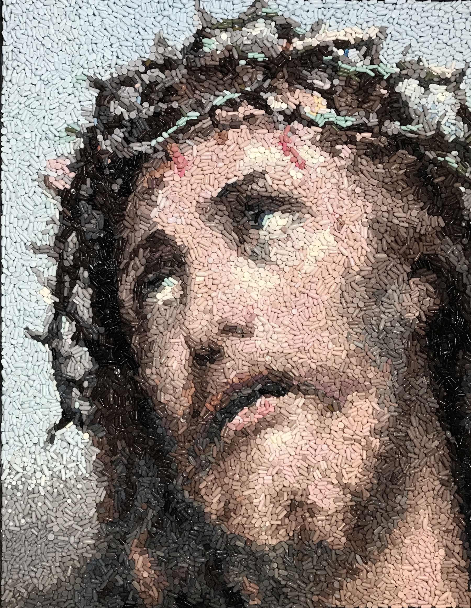 „I create a style of work that blurs the lines between photography, painting and sculpting. Mosaics enable me to elicit the tension and stories between the sculpted and cast pixels and the overall image they compose. My art opens a conversation for the viewer. I want people to think about what these pieces mean to them and how their own experiences make sense of the choices I made when creating the work.“ (Artist Statement)