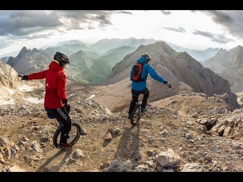 Lutz Eichholz nennt sich selbst professioneller Einradfahrer(!). Das ist ihm jedoch nicht lebensgefährlich und atemberaubend genug, er macht das mit seiner Sportkollegin Stephanie Dietze nochmal eine Ecke härter: Extreme Mountain Unicycling nennt sich das dann. Einen 3.000 Meter hohen Berg in den Dolomiten runter. Mit einem Rad. Also zwei, aber sind ja zwei Leute, also jeder mit einem… versteht schon. Krass.