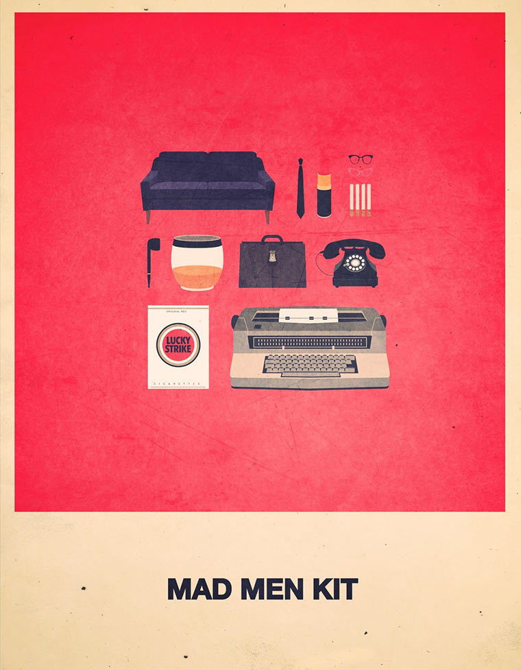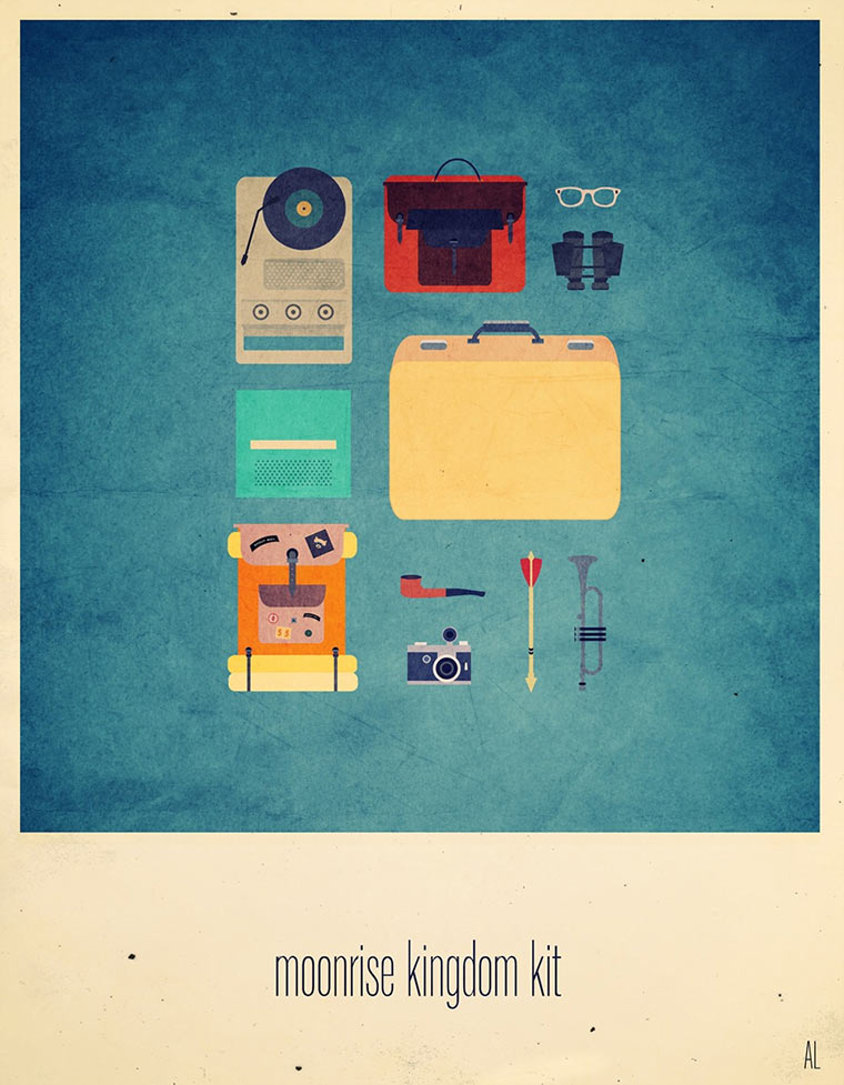 Ganz tolle Illustrationen von Alizée Lafon. Accessoires, Kleidungsgegenstände, Utensilien und Gegenstände von Personen aus bekannten Filmen oder Fernsehsendungen. Alle etwas hipstermäßig, Retro, allesamt sehr stylisch. Genau so stylisch wie der kreative Stil der Poster.