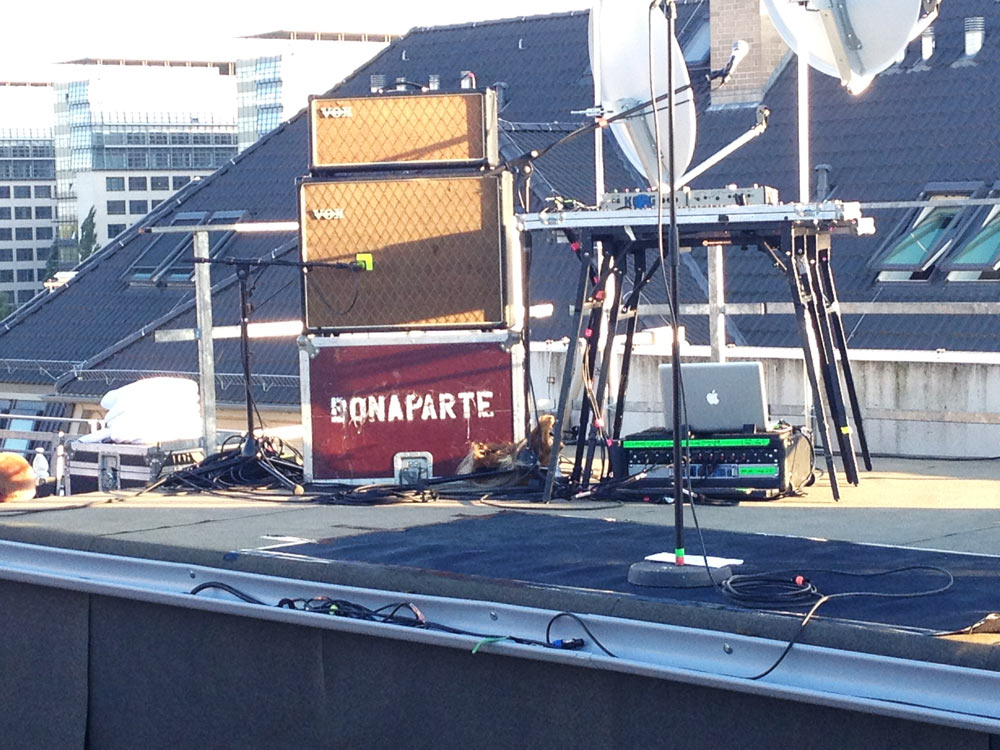 Zum Abschluss kam noch Two Door Cinema Club, passend im Sonnenuntergangssetting inklusive Fernsehturm im Hintergrund. Tolles Setting, tolle Musik – nur die Motivation des Trios schien nicht wirklich groß gewesen zu sein. Vielleicht lags auch am krassen Unterschied zwischen der (Vor-)Bühnenshow Bonapartes und der tristen Hockersitzblockade des zweitürigen Kinovereins. Dennoch ein toller Ausklang der Veranstaltung.