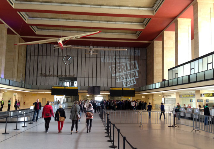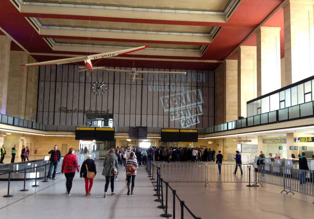 Ja, wir hatten nur eine Tageskarte, aber ganz ehrlich: Der Großteil des guten Lineups war eh erst Samstag aktiv. Sehr imponsiert hat mir das alte Flughafengelände und die Inszenierung der Festivalorganisation. In Stewardess- und Flugbegleiteroutfits wurde man begrüßt und bedient. Zudem die Timeslots der Bands als Abflugzeiten präsentiert. Das hatte schon Charme. So wie natürlich die riesige beflügelte Main-Stage. Auch auf dem riesigen Gelände selbst standen noch zwei Flugmaschinen herum, das hat schon Eindruck hinterlassen.