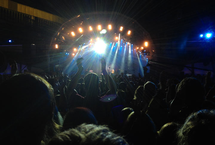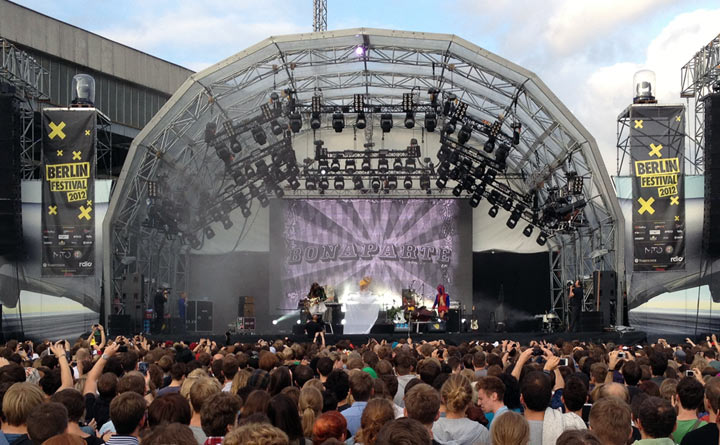 Positiv überrascht hat mich die Neuseeländerin Kimbra. Klar, kannte man vorher ein Feature und zwei Einzeltracks von ihr, aber die Performance war wirklich gut, trotz leicht hallendem Sound im Hangar. Aber der Sound war immer noch besser als das, was der Soundfritze bei Bonaparte veranstaltet hat. Das grenzte schon an einer Geld-zurück-Klage. Erst benötigen sie 20 Minuten mehr zum Setup, dann fehlen in der ersten halben Stunde reihum immer mal einzelne Instrumente komplett. Strophen klingen halt irgendwie doof, wenn nur das Schlagzeug zu hören ist. Herbe Enttäuschung beim eigentlich geplanten Highlight für mich.