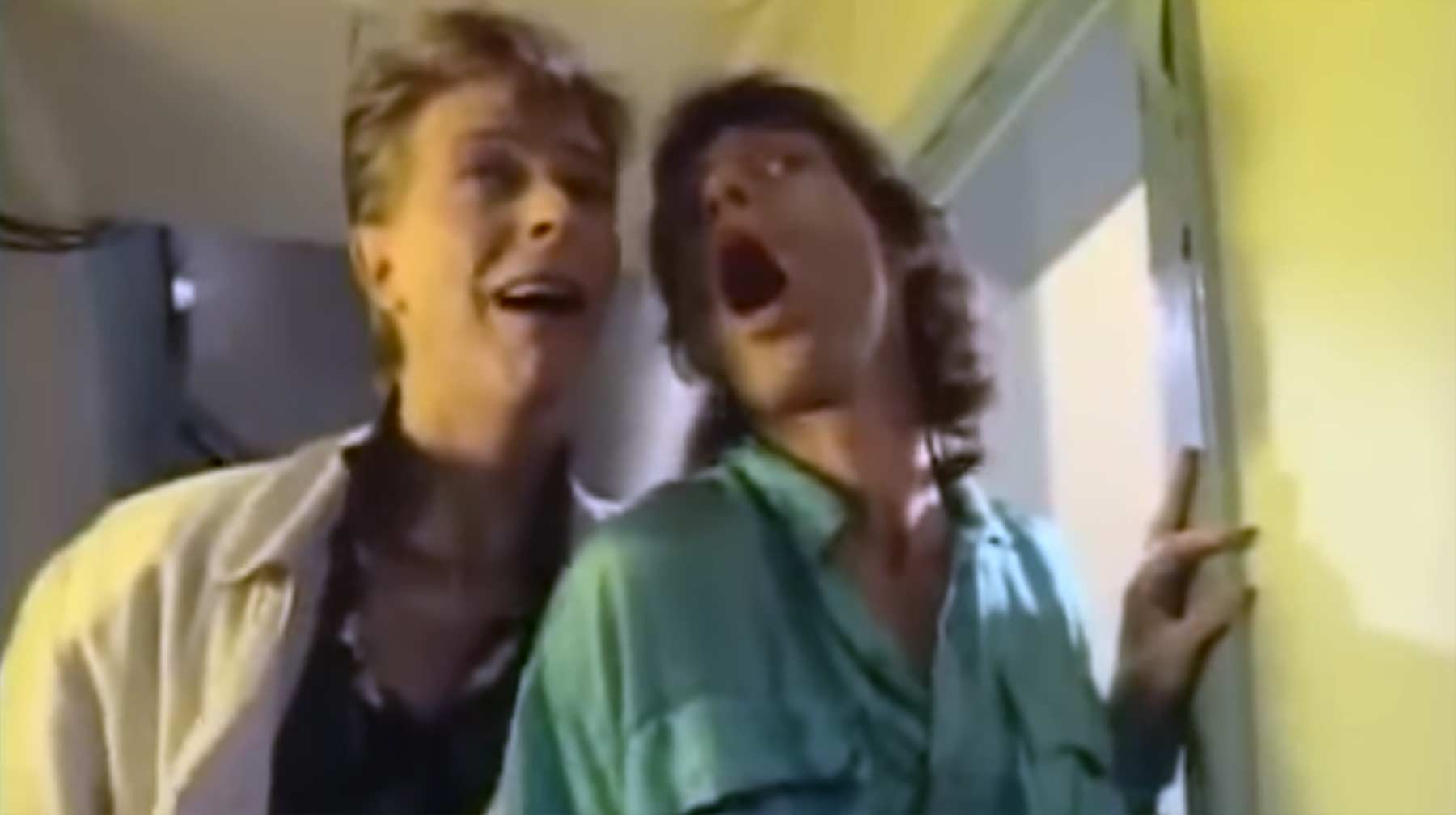 Strack Azar hat zwei ganz großen der Musikgeschichte die Musik genommen und nur noch ihre Stimmen sowie ein paar Soundeffekte gelassen. Wunderbar blödsinnig, wie so oft bei den „Musicless Videos“, dazu mal erfreulicherweise mehr als nur eine ausschnitthafte Minute oder so. Wobei Musikvideos damals ja an sich nicht sonderlich sinnbehaftet waren…