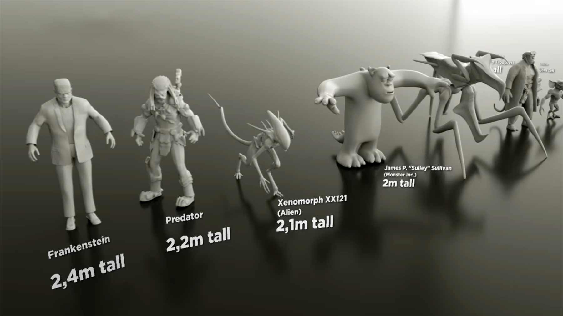 Auch wenn ich solche filmischen „Aneinanderreihungen“ nicht wirklich visuell ansprechend finde, ist diese Auswahl an Filmmonstern von MetaBallStudios durchaus interessant abzuschreiten. Und ja, letztlich visualisiert sie ja ganz gut die Größenverhältnisse (vor allem ganz am Ende).