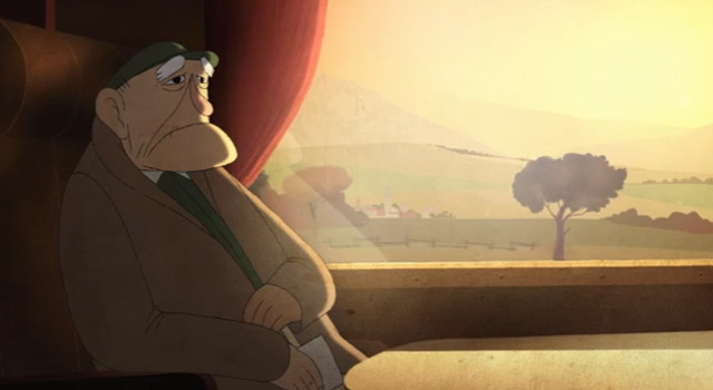 Sur Les Rails ist ein wunderbar weich animierter Kurzfilm von Jeremy Guiter, in dem uns ein sympathischer Rentner gezeigt wird, der während einer Bahnfahrt über sein Leben nachdenkt. Immer wieder schön solche minutenkurzen Zusammenfassung einer ganzen Lebensspanne.