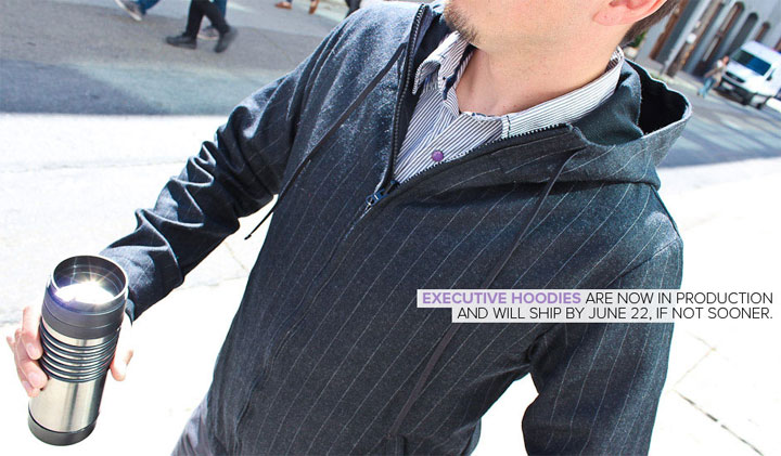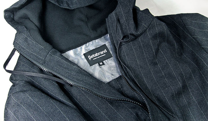„After years of experimentation and one enormous bill at our local particle accelerator, the fashion physicists at Betabrand have finally combined business-suit and hoodie molecules at the subatomic level.“