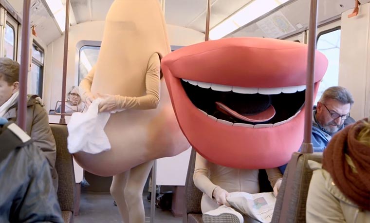 „Was passiert, wenn ein übergroßer Mund und eine kränkelnde, menschengroße Nase U-Bahn fahren…?“