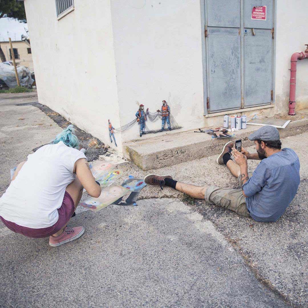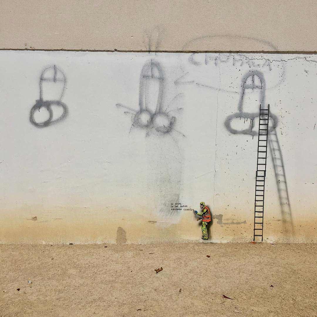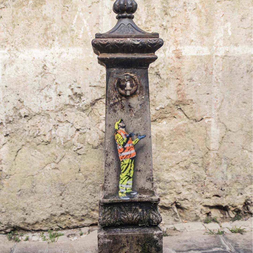 Mehr Bauarbeiter-Street Art von Jaune lässt sich auf seinem Instagram-Profil finden.