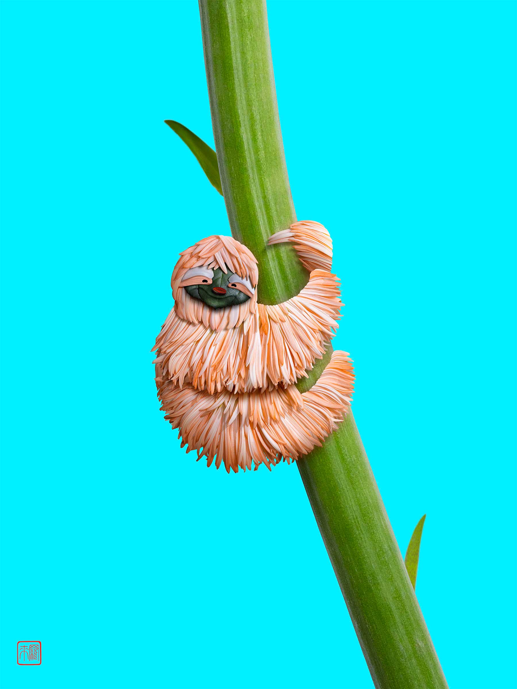 Vor etwas über einem Jahre hatte ich euch bereits hier über die tollen Blumenblüten-Tiere von Raku Inoue berichtet. Damals hatte der Künstler aus Montreal gerade damit begonnen, nach eher „platten“ 2D-Insekten auch dreidimensional anmutende Abbilder zu schaffen. Von denen gibt es jetzt einige weitere und man merkt Jahr für Jahr aufs Neue, wie sich seine Technik weiter verfeinert. Entsprechend sind seine Motive mittlerweile auch in angesehenen Publikationen, wie dem Magazin „National Geographic“ zu sehen. Hier daher ein kleines Update mit einigen seiner tollen neueren Skulpturen, die Tiere aus Blumenblüten zeigen. Okay, hauptsächlich auch, um euch das oben zu sehende Faultier zu zeigen. Soo goldig!