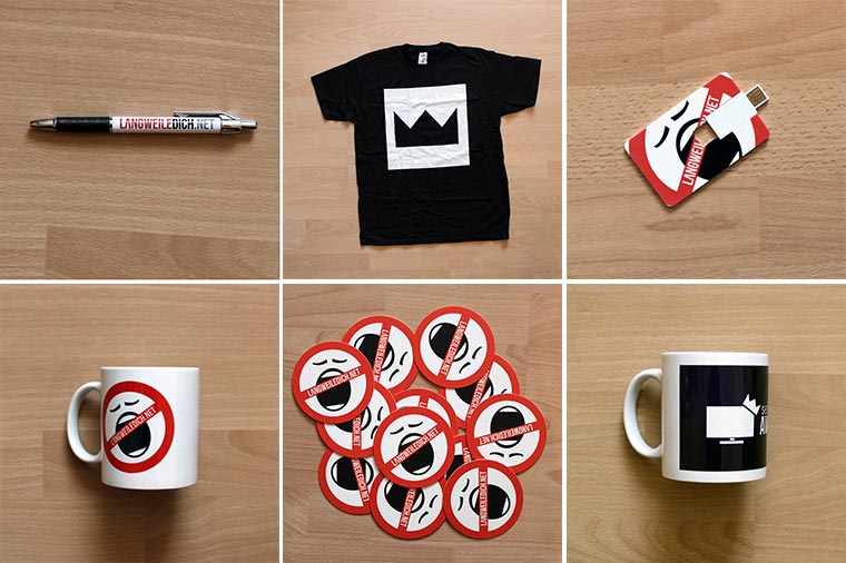 On top gibt es bei jeder Bestellung ein paar Aufkleber oder Buttons oder so. Ab jetzt ganz einfach erreichbar unter LangweileDich.net/merch/.