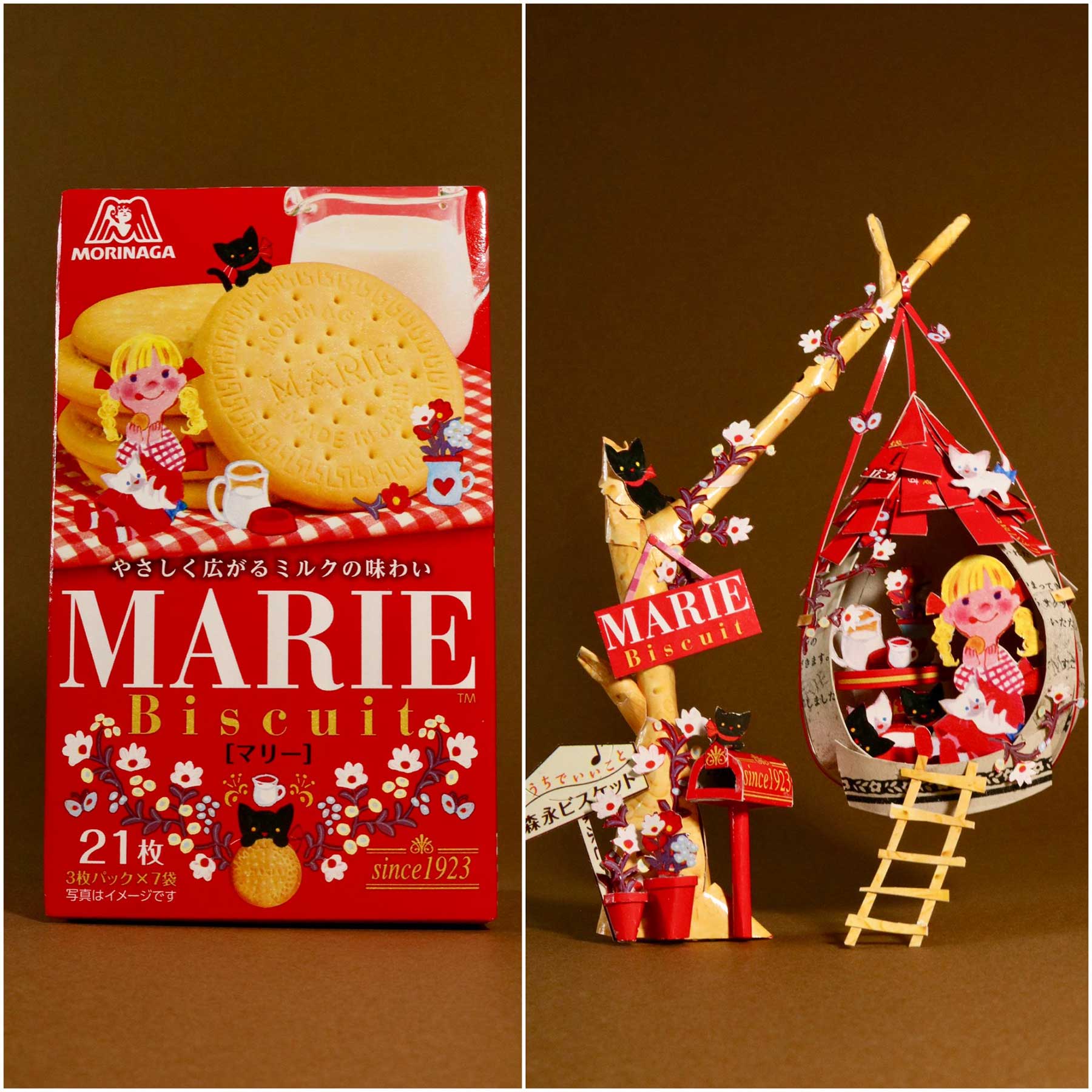 Im Januar vergangen Jahres hatte ich euch hier bereits ausführlich die kreativen Arbeiten des japanischen Künstlers Haruki vorgestellt. Vor anderthalb Jahren waren das noch hauptsächlich Süßigkeitsverpackungen, die in Manier des „Kiries“ oder „Kirigami“ (eine Schwesterkunst des Origami) in Form gebracht worden waren. Nach Chips-, Schokoladen- und anderen Snack-Materialien hat Haruki sein Portfolio mittlerweile erweitert und seine Technik nochmals verfeinert. Hier einige aktuelle Skulpturen, die einfach genial ausschauen, vor allem, wenn man sie mit der ursprünglichen Verpackung vergleicht. Dabei wird nämlich nicht einfach „nur“ das oftmals aus Papier und Pappe bestehende Material in Form gebracht, sondern auch bewusst mit den darauf abgedruckten Motiven umgegangen, die gekonnt in Szene gesetzt werden.